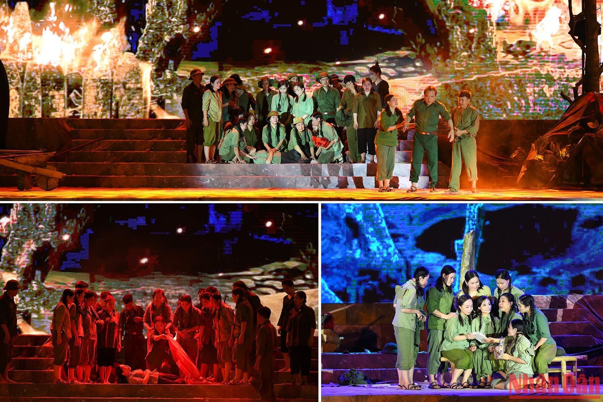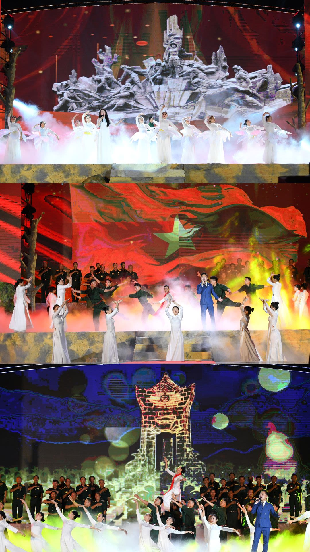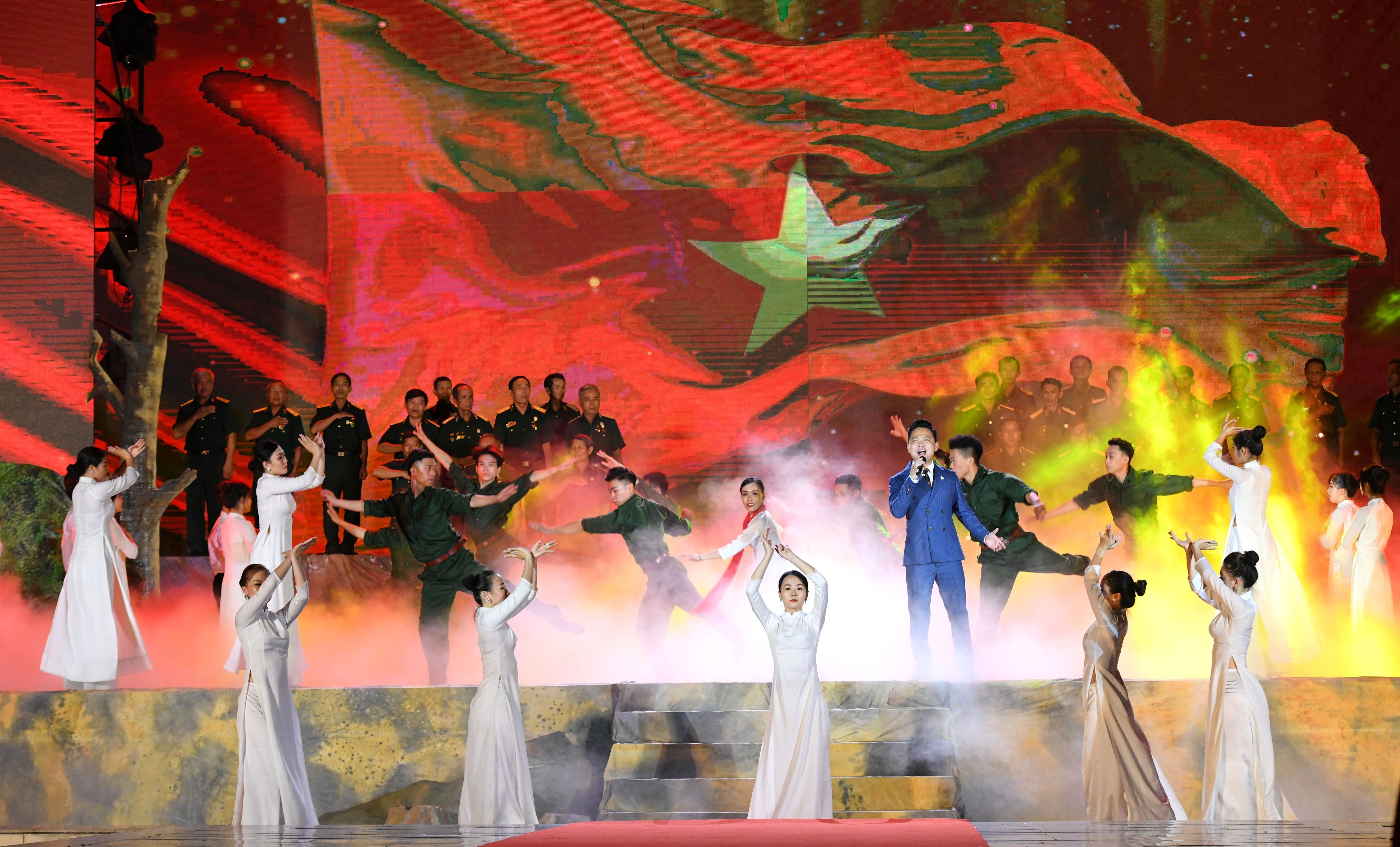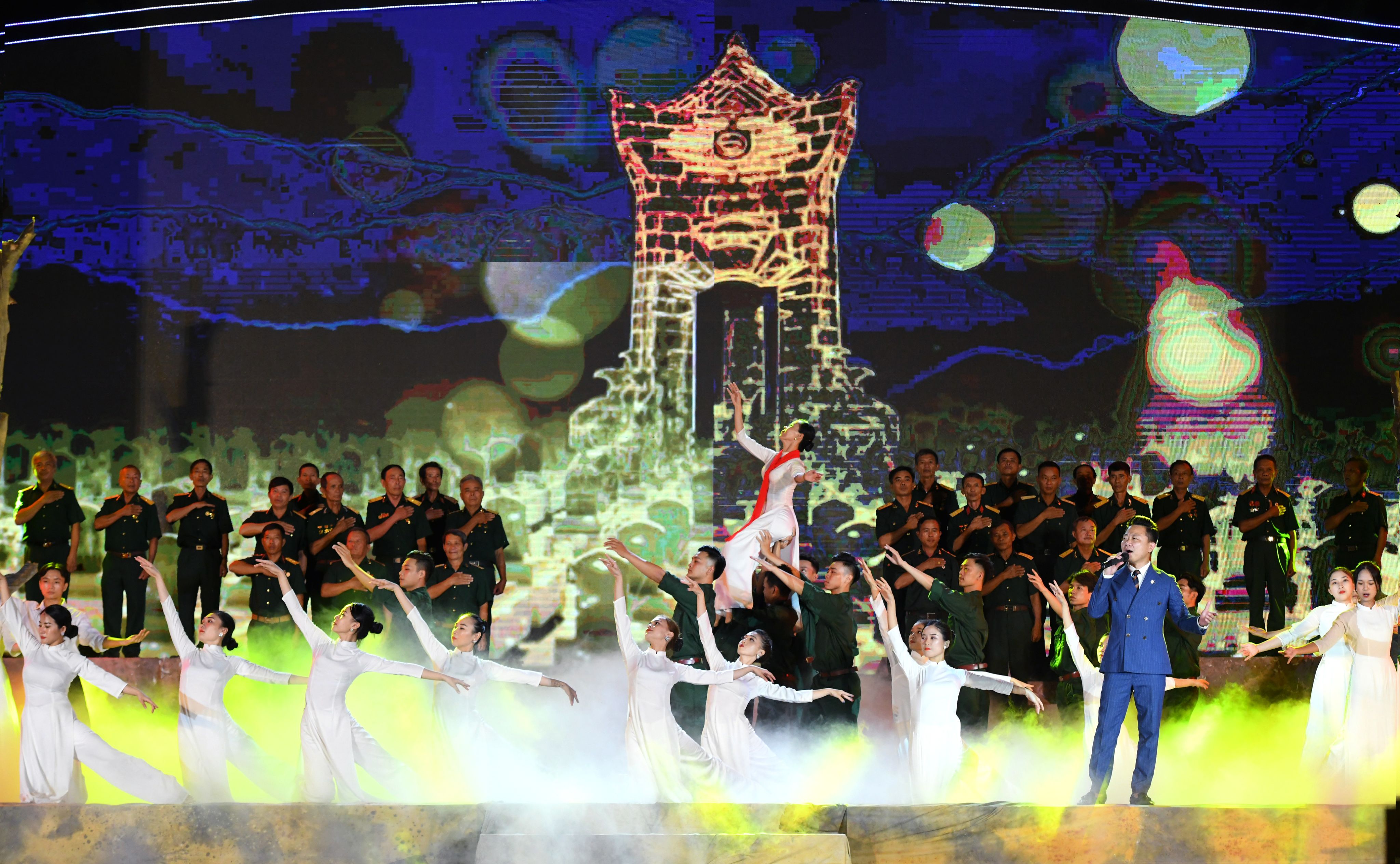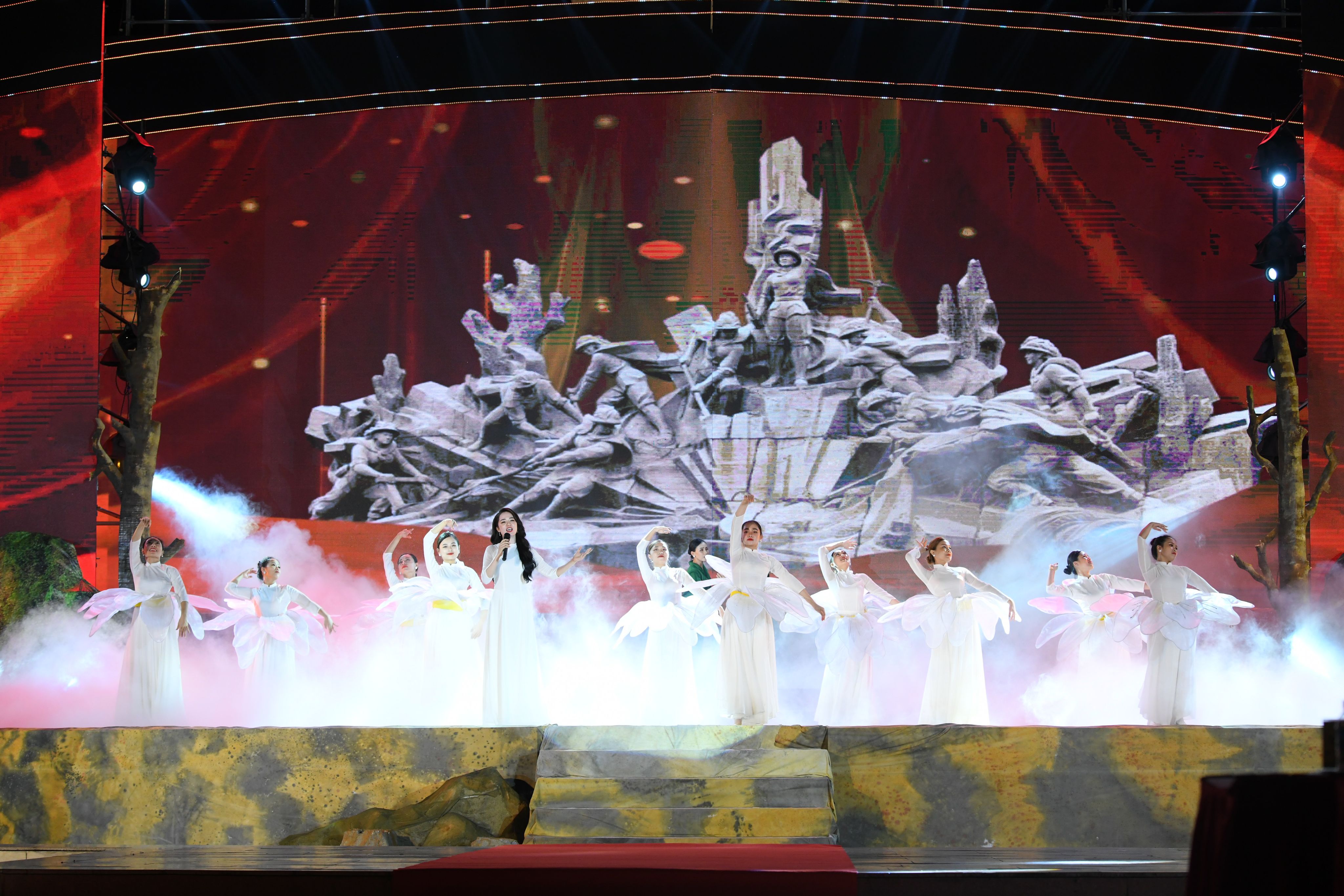 Màn trình diễn nghệ thuật đặc sắc với chủ đề “Cõi thiêng Đồng Lộc” tái hiện những năm tháng chiến đấu, hy sinh của 10 cô gái thanh niên xung phong và các Anh hùng liệt sĩ tại Ngã ba Đồng Lộc qua những vở kịch ngắn xúc động và những ca khúc hát, múa hấp dẫn, lắng đọng.