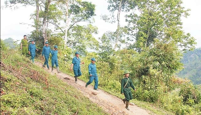 Bộ đội Biên phòng phối hợp các lực lượng chức năng tuần tra bảo vệ rừng tại thôn Pao Mã Phìn, xã Tả Ván, huyện Quản Bạ (Hà Giang).