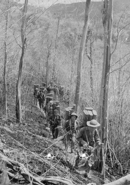 Bằng mọi phương tiện thô sơ, các chiến sĩ vận tải Tây Nguyên vận chuyển hàng ngàn tấn hàng hoá phục vụ chiến dịch. (Ảnh: TTXVN)
