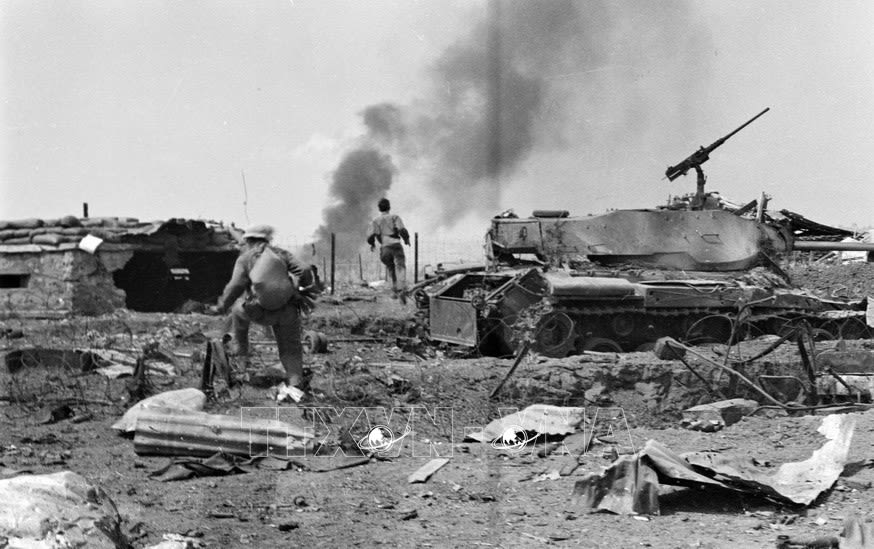Bộ đội ta giải phóng Đắc Tô - Tân Cảnh (Kon Tum). (Ảnh: TTXVN)