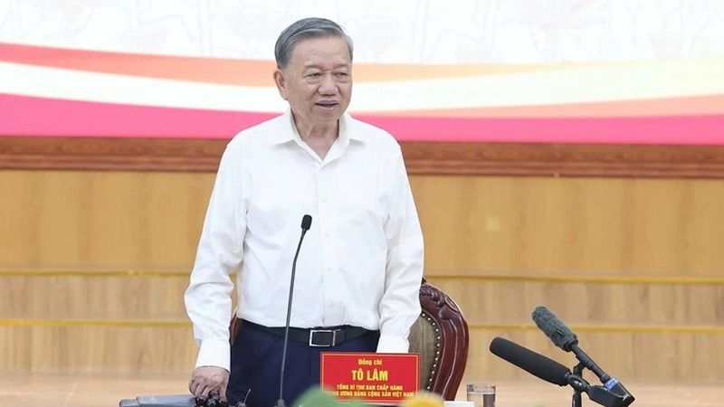 Tổng Bí thư Tô Lâm phát biểu chỉ đạo tại buổi đến thăm, kiểm tra hoạt động của chính quyền địa phương 2 cấp tại phường Tây Hồ, thành phố Hà Nội ngày 1/7/2025. (Ảnh: TTXVN)