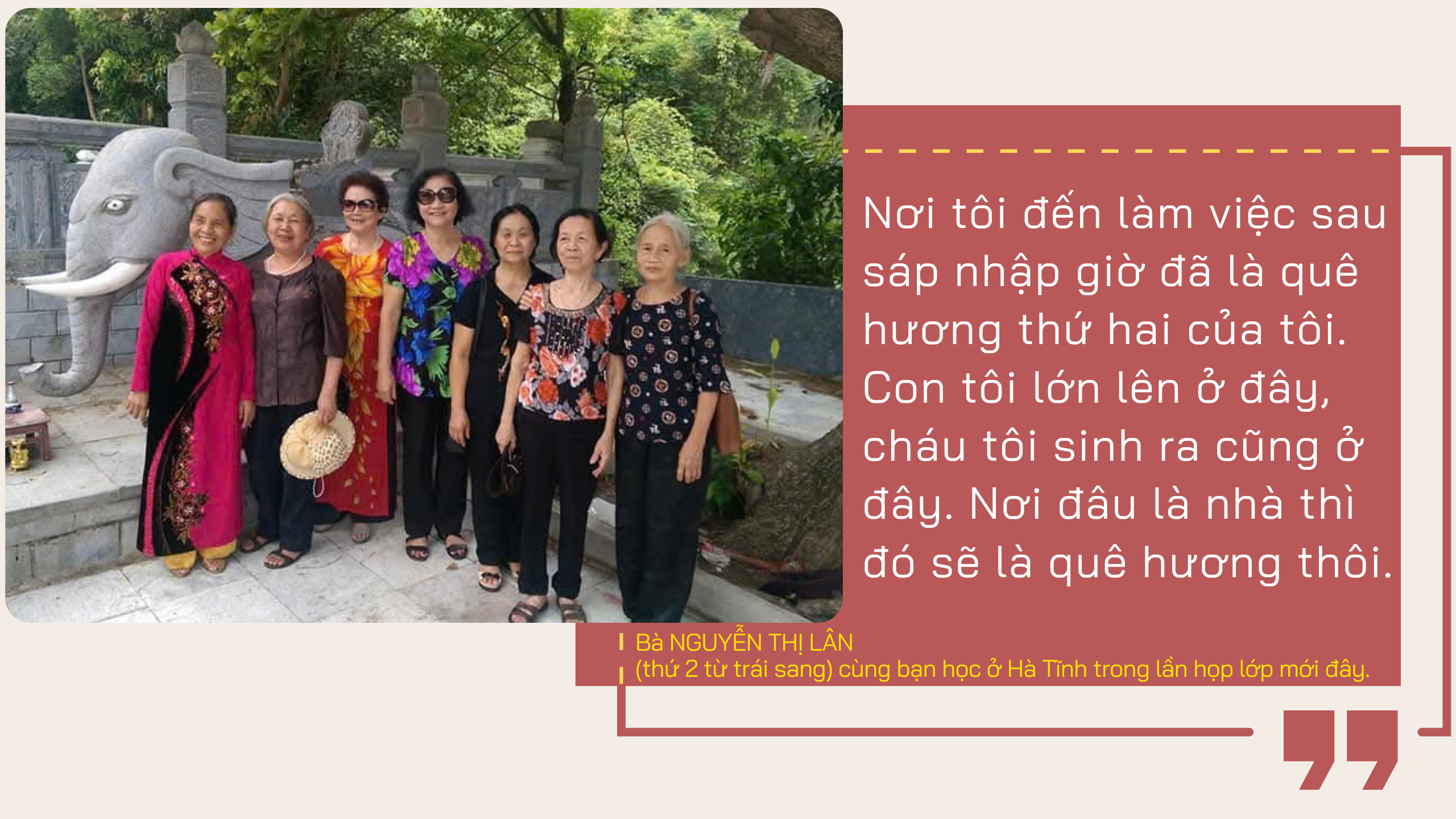 Sau gần nửa thế kỷ ổn định cuộc sống tại thành phố cách quê nhà khoảng 60km, bà Nguyễn Thị Lân vẫn hài lòng với cuộc sống của mình, với những trải nghiệm mà nếu chỉ sinh sống và làm việc tại quê hương sẽ khó mà có được. “Nơi tôi đến làm việc sau sáp nhập giờ đã là quê hương thứ hai của tôi. Con tôi lớn lên ở đây, cháu tôi sinh ra cũng ở đây. Nơi đâu là nhà thì đó sẽ là quê hương thôi”, bà Lân giờ đã 78 tuổi cười giản dị.