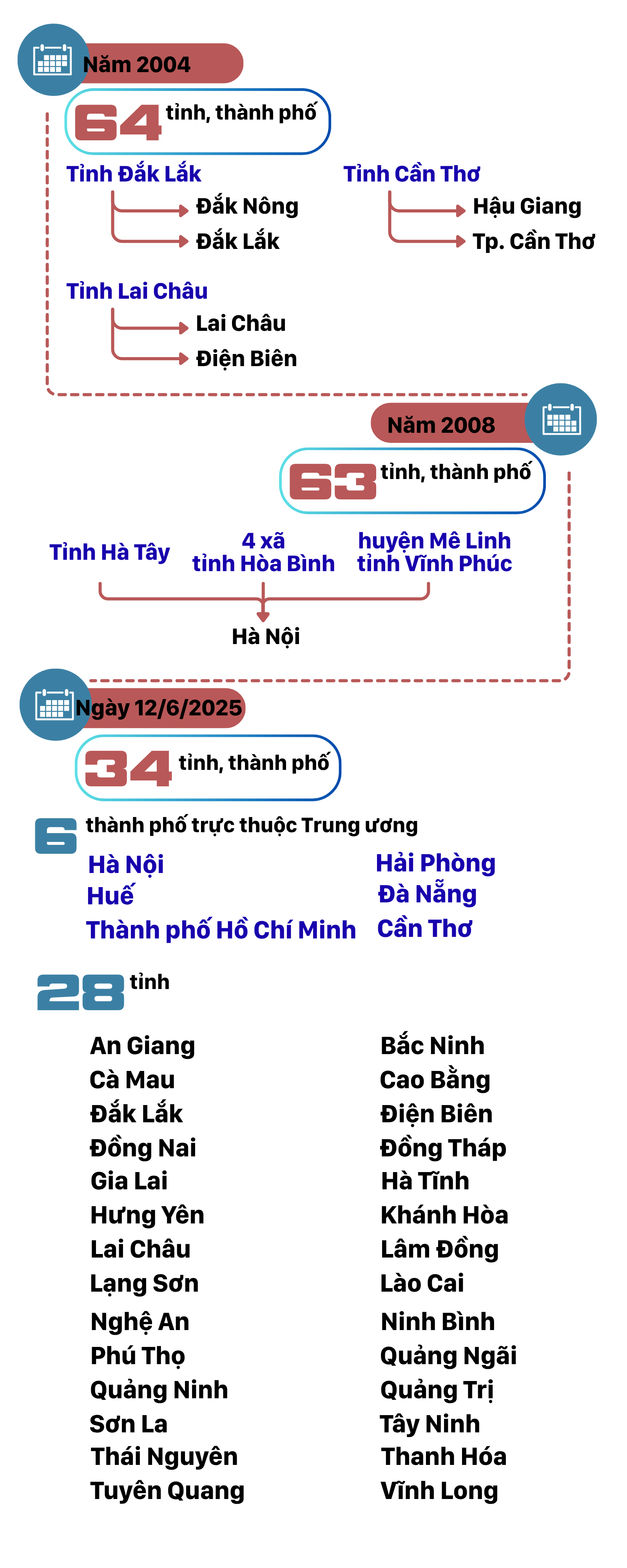 Hơn 4 tháng trước, ngày 12/6/2025, Quốc hội khóa XV đã biểu quyết thông qua Nghị quyết về việc sắp xếp đơn vị hành chính cấp tỉnh năm 2025. Theo đó cả nước từ 63 tỉnh, thành phố sáp nhập còn 34 đơn vị hành chính cấp tỉnh gồm 28 tỉnh và 6 thành phố trực thuộc trung ương; đồng thời bỏ cấp huyện trong tổ chức hành chính (mô hình chính quyền 2 cấp: tỉnh và xã). Các đơn vị hành chính mới bắt đầu hoạt động từ ngày 1/7/2025.
