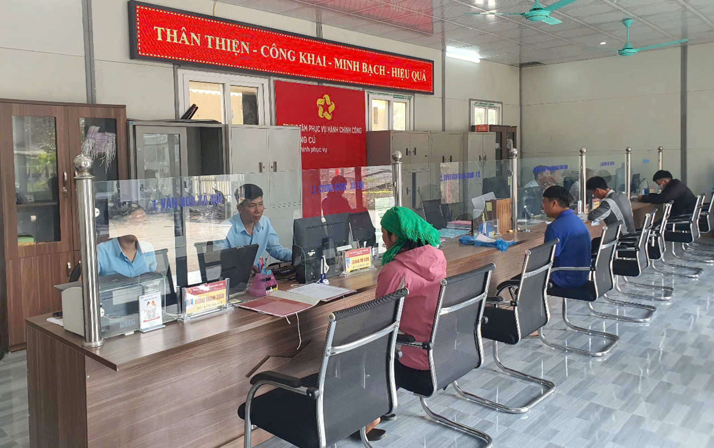 Tỷ lệ giải quyết các thủ tục hành chính tại Trung tâm phục vụ hành chính công xã Lũng Cú, tỉnh Tuyên Quang đạt 99%. Ảnh Đức Thắng.