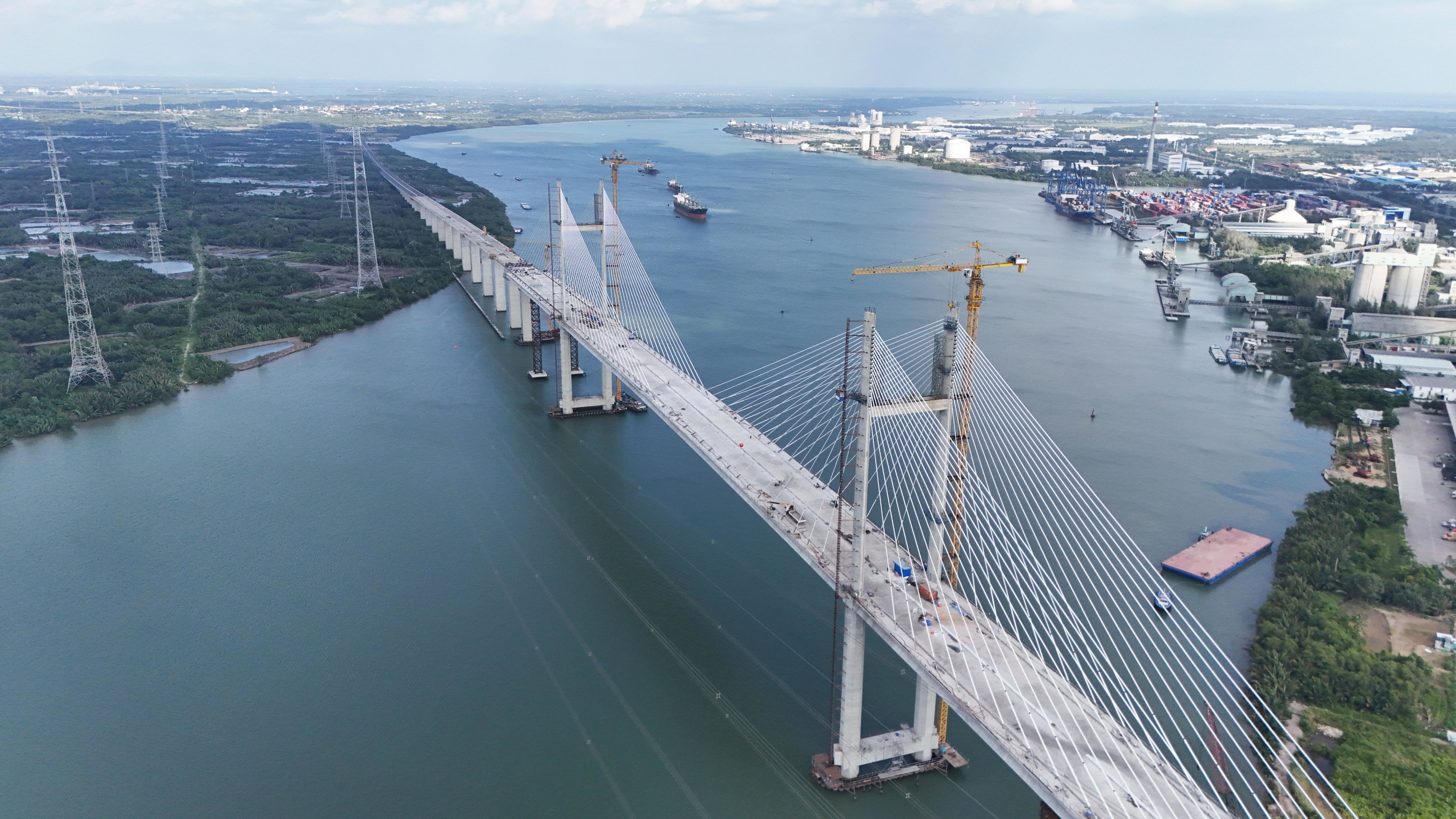 Dự án cầu Bình Khánh (Thành phố Hồ Chí Minh) thuộc gói thầu J1, tuyến cao tốc Bến Lức-Long Thành hiện đang dần hoàn thiện những công đoạn cuối cùng. Ảnh: Thế Anh.