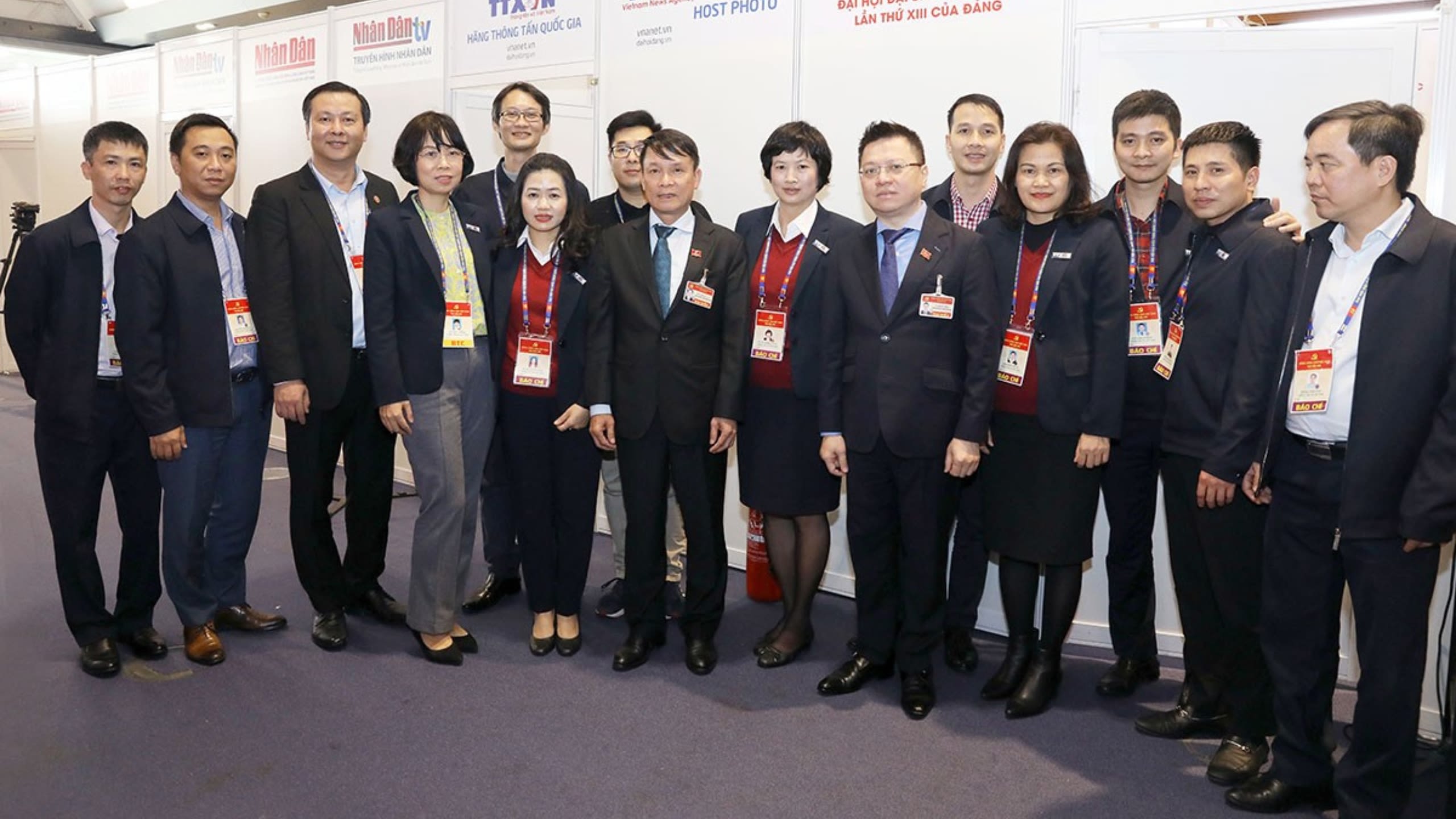 Ban lãnh đạo và các phóng viên, biên tập viên và kỹ thuật viên TTXVN tại Đại hội đại biểu toàn quốc lần thứ XIII của Đảng, năm 2021.