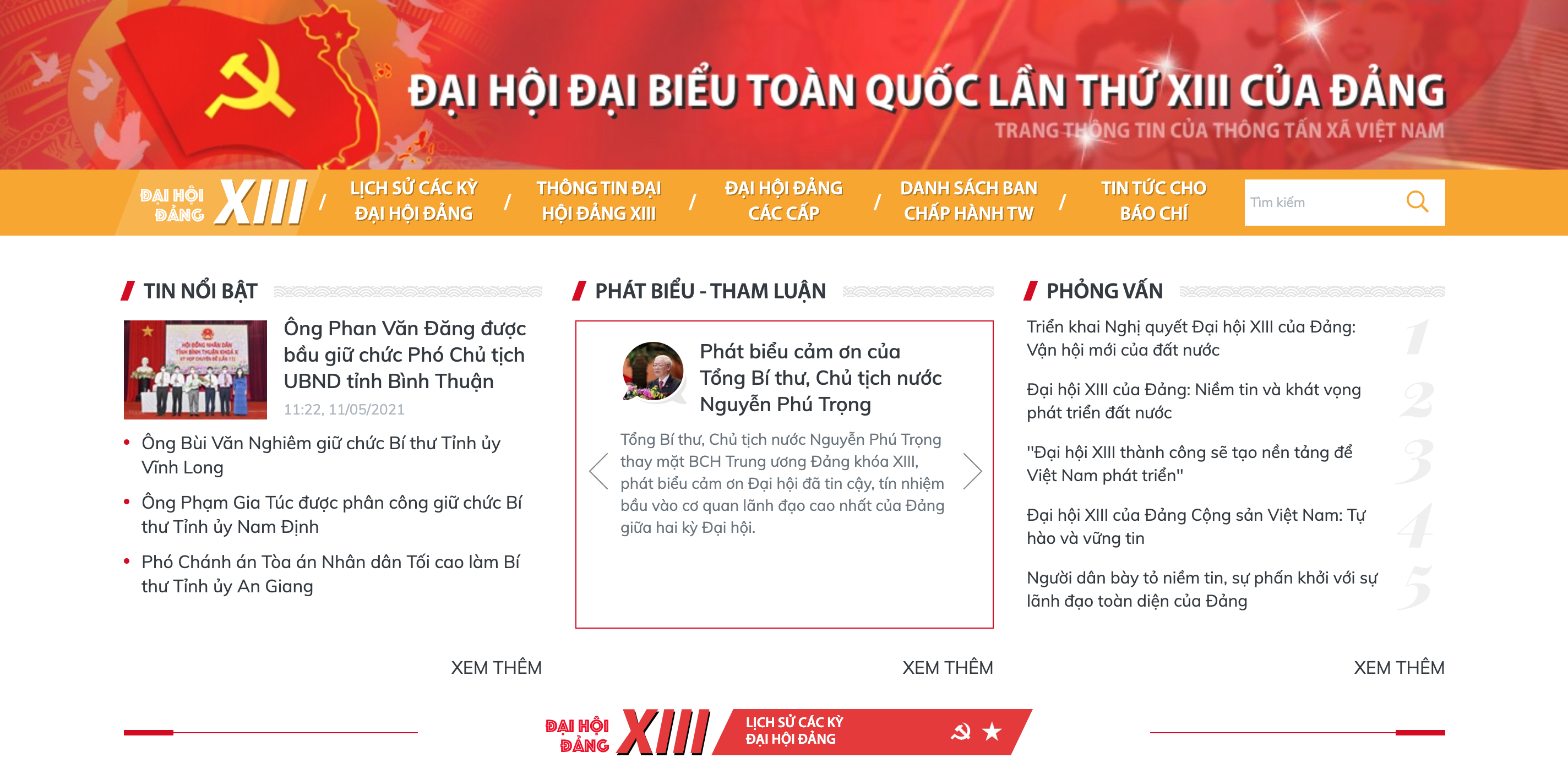 Trang thông tin về các kỳ Đại hội trên TTXVN.