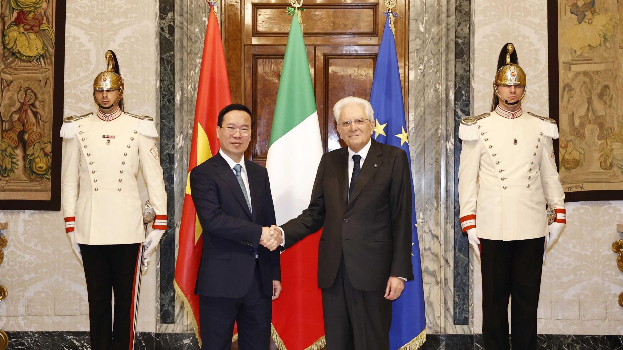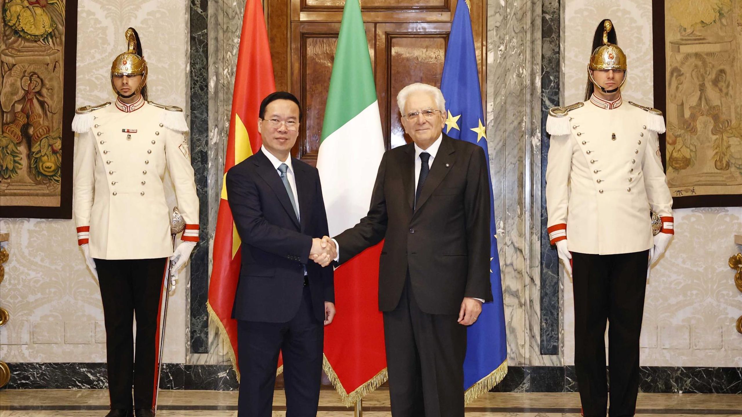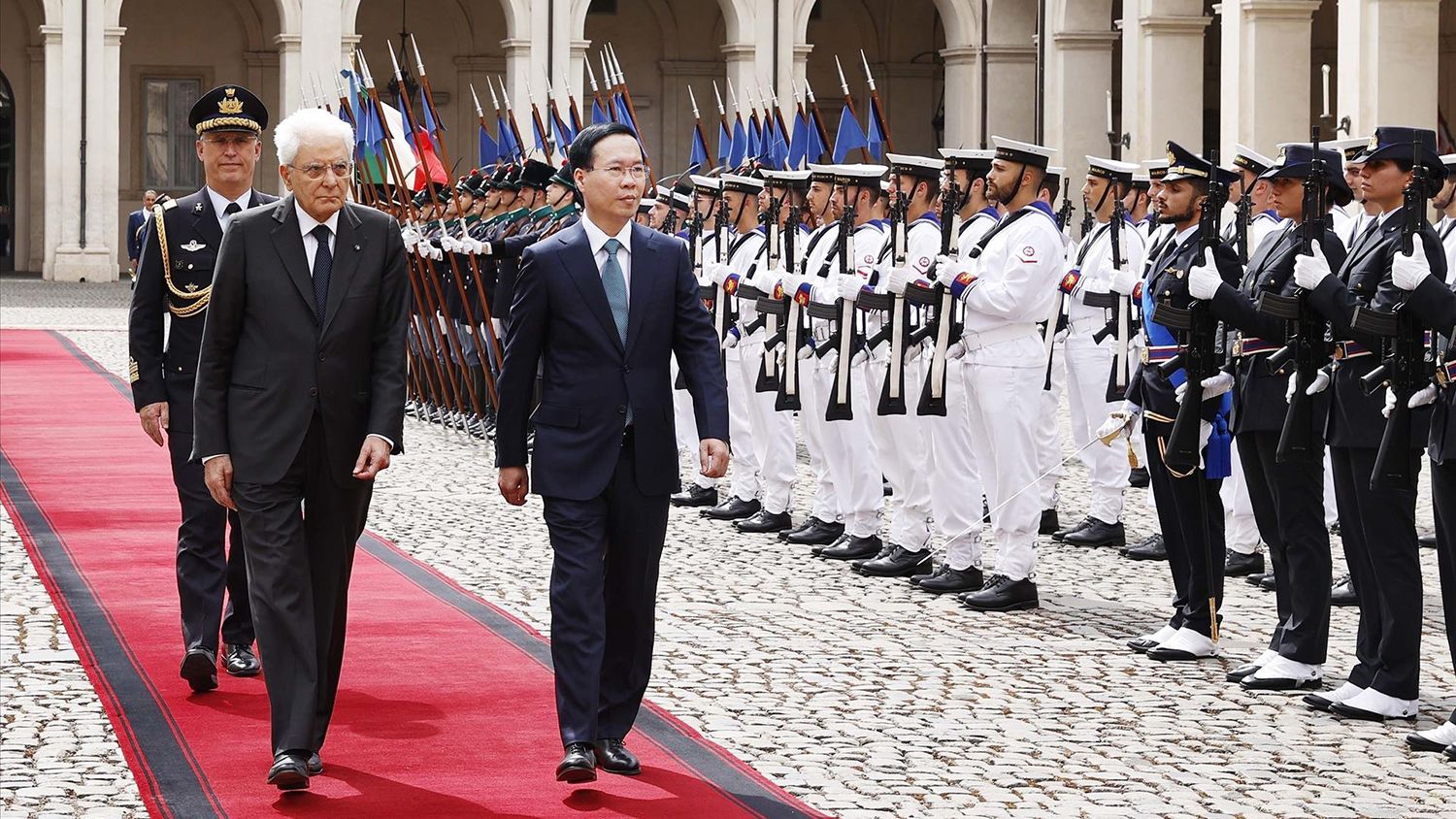 Chặng dừng chân tiếp theo trong chuyến công du châu Âu của Chủ tịch nước Võ Văn Thưởng là Italia. Sự trân trọng của nước bạn đối với chuyến thăm của Chủ tịch nước được thể hiện ngay từ lễ đón trang trọng với những nghi thức cấp Nhà nước.