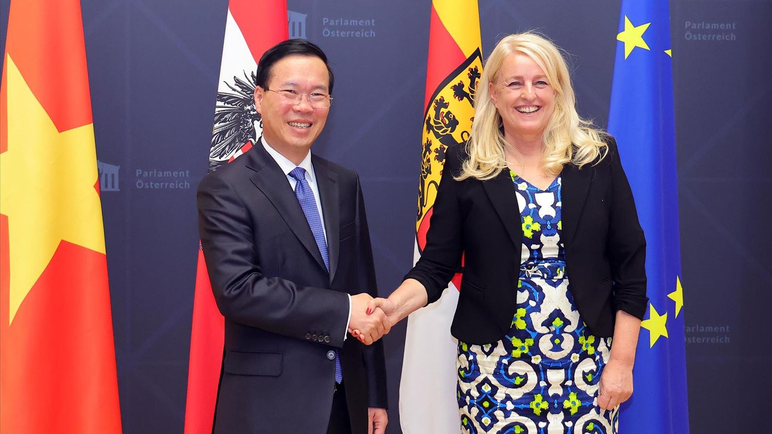 Trong khuôn khổ chuyến thăm chính thức Cộng hòa Áo, Chủ tịch nước Võ Văn Thưởng gặp Chủ tịch Thượng viện Áo Claudia Arpa. Để tăng cường hợp tác nghị viện hai nước, Chủ tịch nước Võ Văn Thưởng đề nghị hai bên đẩy mạnh tăng cường trao đổi đoàn các cấp nhằm gia tăng tin cậy chính trị, tạo thuận lợi cho hợp tác song phương, phối hợp chặt chẽ tại các diễn đàn liên Nghị viện khu vực và thế giới.