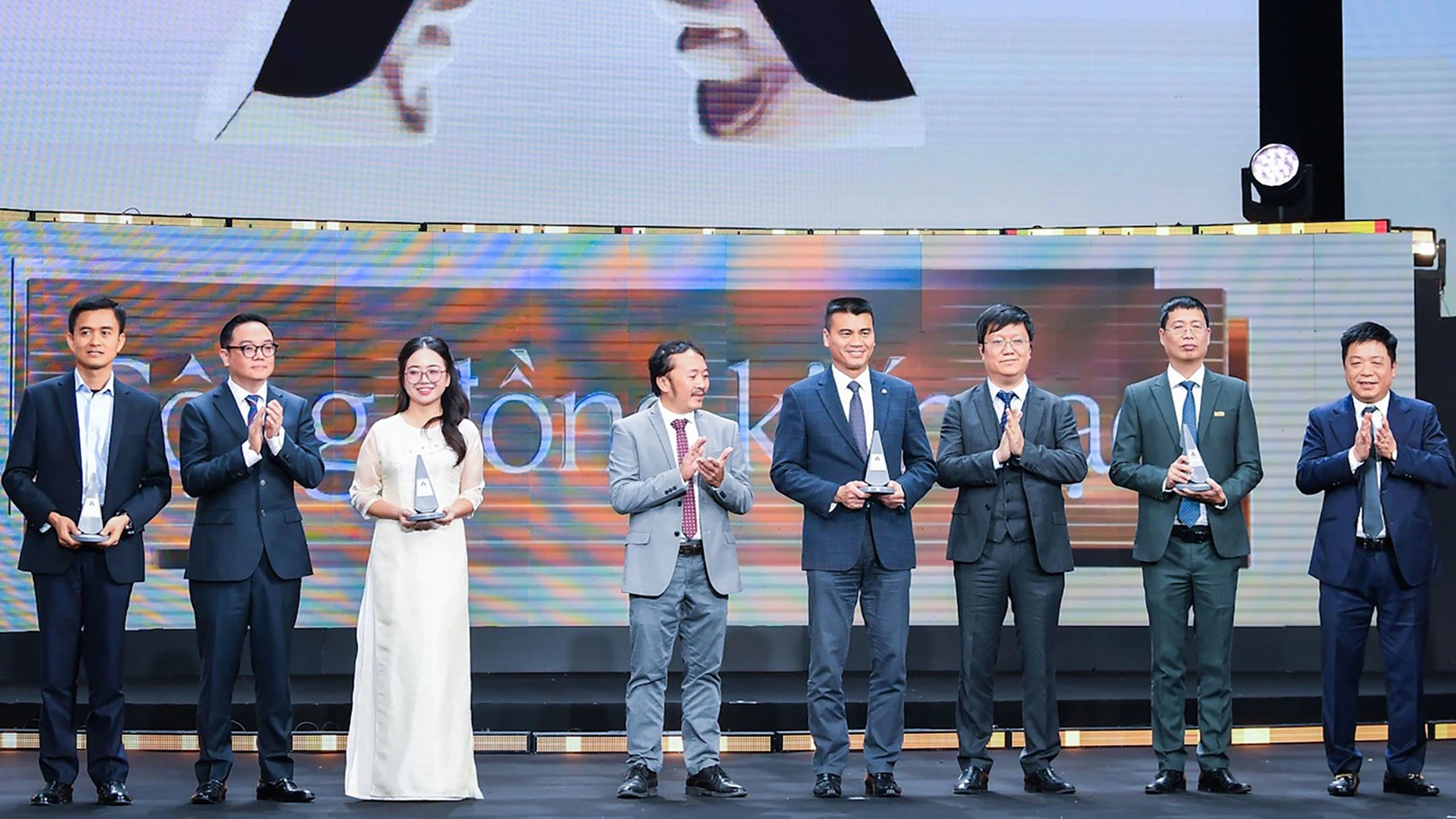 Nhà báo Trần Việt Hưng, Phó tổng biên tập Báo Thanh Niên (thứ 2 từ phải sang), nhận giải thưởng từ ban tổ chức Giải thưởng Hành động vì Cộng đồng - Human Act Prize 2024.