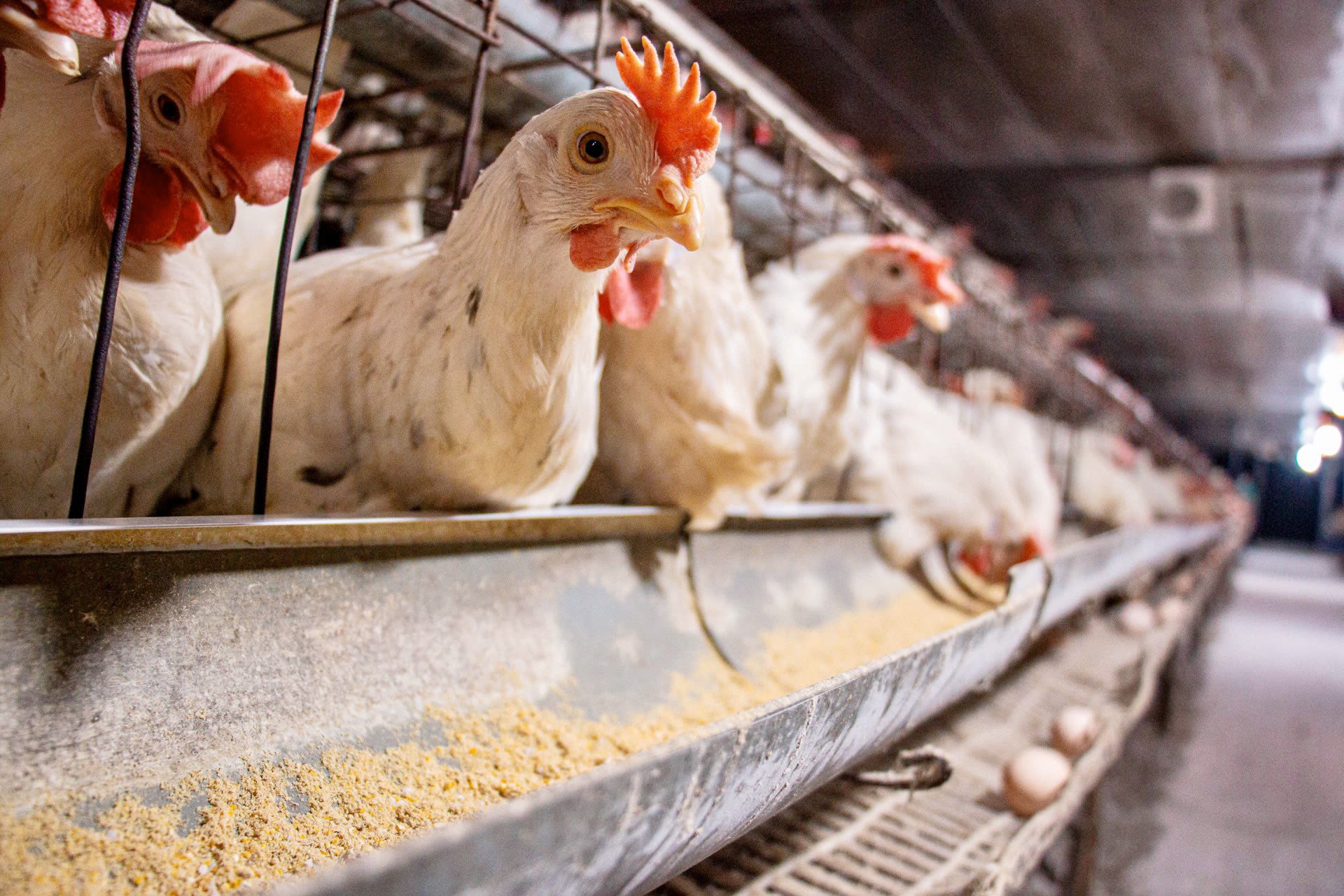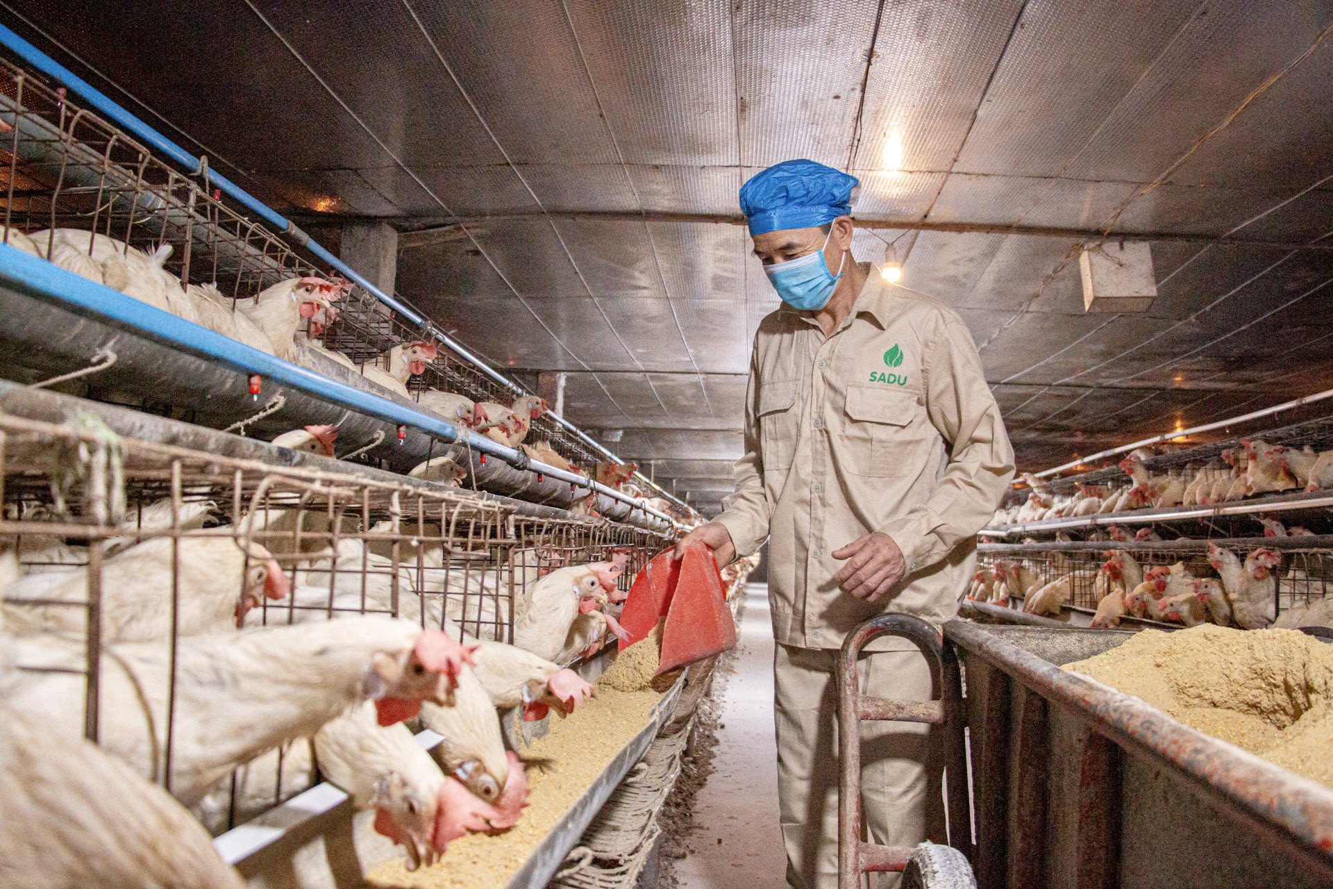 5.000 con gà trong trang trại của anh Kiên được nhốt lồng, chia theo tầng, nuôi theo phương châm: phân không dẫm lại, nước không uống lại, không khí không ngửi lại (gió chỉ đi 1 chiều, không quẩn lại), nhiệt độ luôn bảo đảm 25-30 độ C. Thức ăn cho gà được anh tỉ mỉ nghiên cứu, lên công thức riêng: cà gai leo, các loại thảo dược, cám gạo tươi, chọn ngô riêng, dùng dầu ăn của người chứ không dùng mỡ cá basa như hầu hết các cơ sở khác,… không dùng bột cá, hay siêu thịt làm trứng gà tanh.