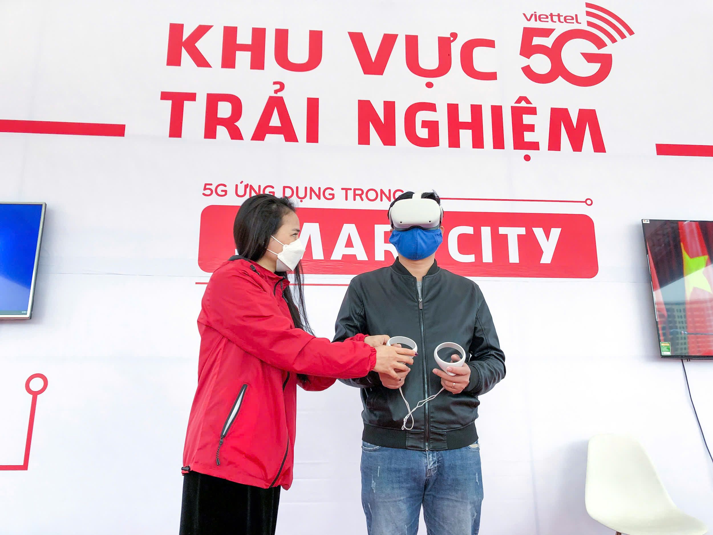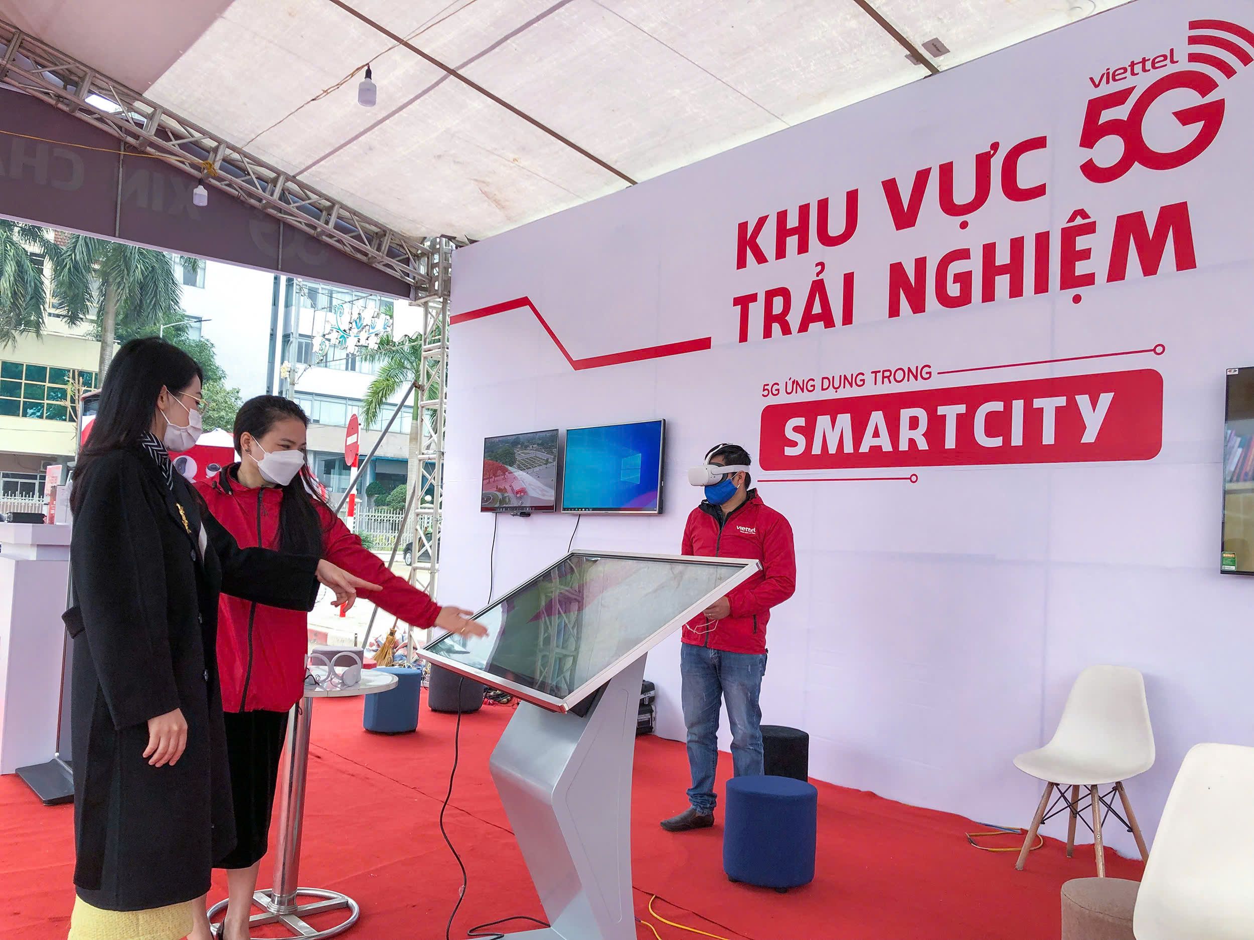 Người dân Thái Nguyên trải nghiệm 5G. Ảnh: THẾ BÌNH