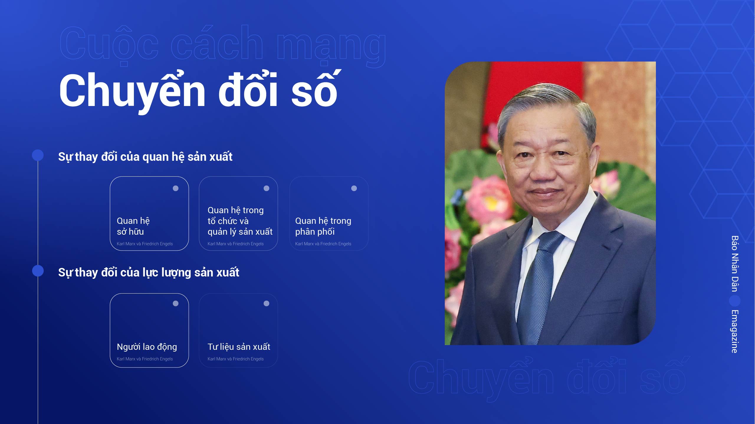 Phóng viên: Nhân dịp kỷ niệm 79 năm Cách mạng Tháng Tám và Quốc khánh 2/9, Tổng Bí thư Tô Lâm có bài viết quan trọng:“Chuyển đổi số - động lực quan trọng phát triển lực lượng sản xuất, hoàn thiện quan hệ sản xuất đưa đất nước bước vào kỷ nguyên mới”. Xin đồng chí cho biết những quan điểm mới, cốt lõi của Tổng Bí thư Tô Lâm về chuyển đổi số?