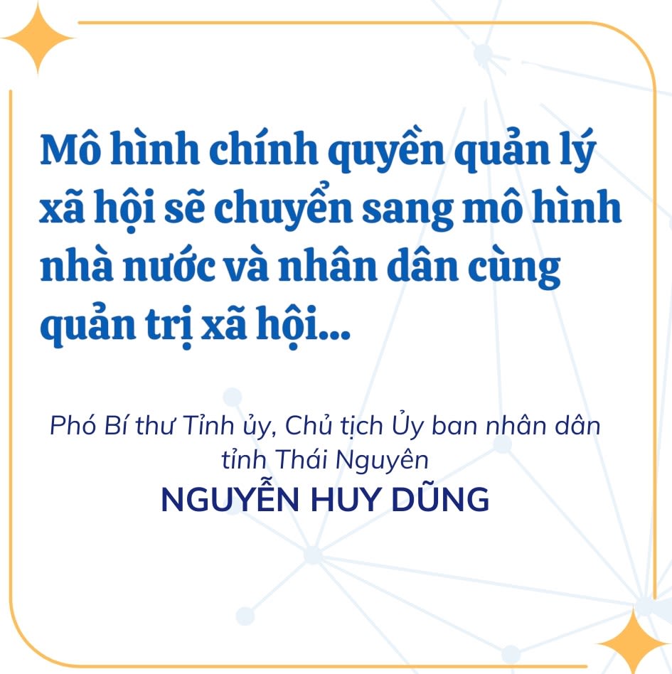 Như vậy, mô hình chính quyền quản lý xã hội sẽ chuyển sang mô hình nhà nước và nhân dân cùng quản trị xã hội. Đây là cụ thể hóa thêm một bước nữa, sâu sắc hơn nữa phương châm “dân biết, dân bàn, dân làm, dân kiểm tra, dân giám sát, dân thụ hưởng” mà Bác Hồ và Đảng ta đã chủ trương.