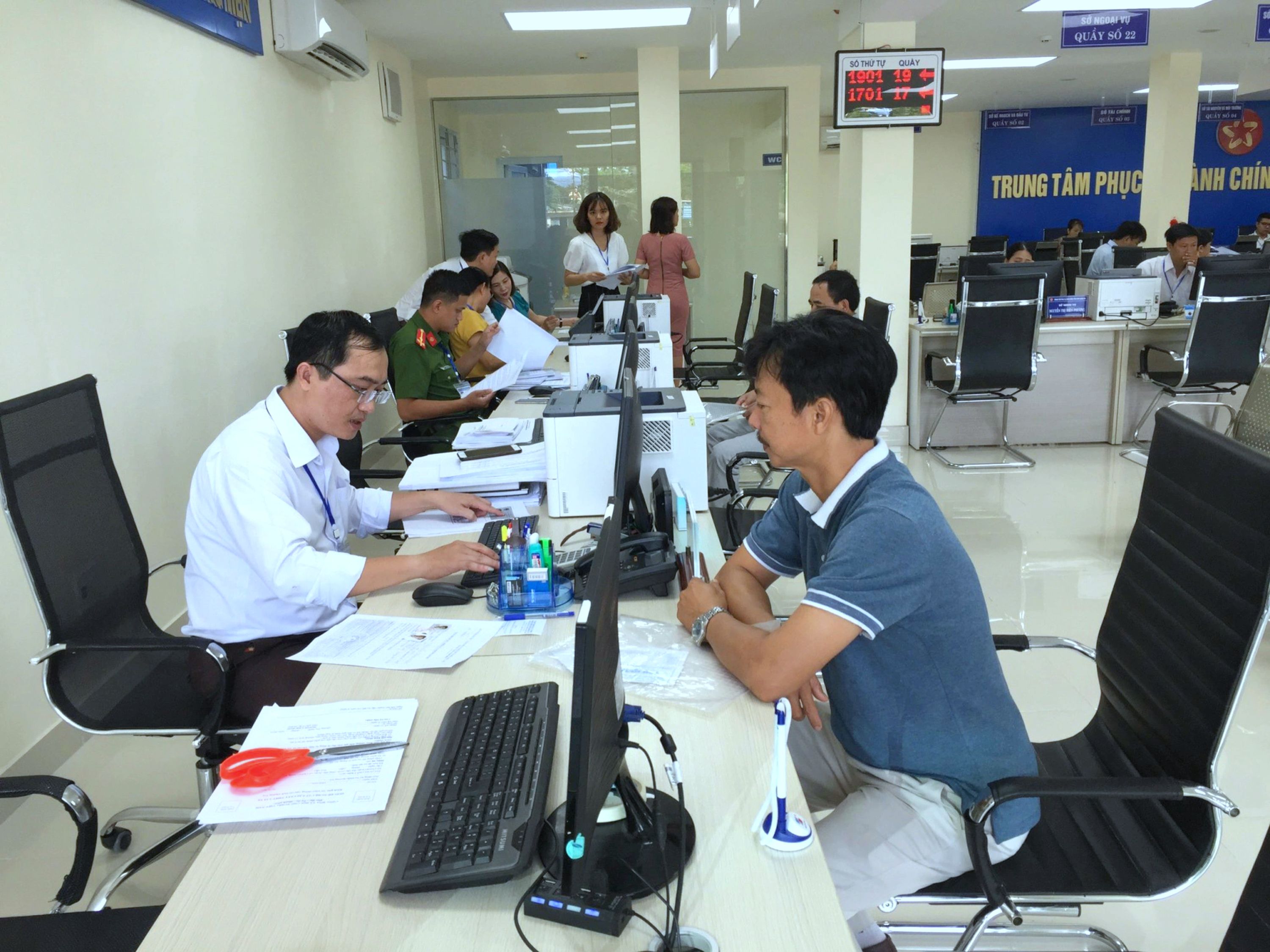 Người dân làm thủ tục tại Trung tâm Phục vụ hành chính công tỉnh Quảng Trị. Ảnh: Như Quỳnh