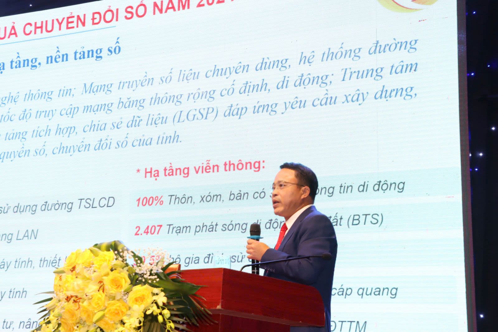 Đồng chí Đoàn Thanh Hải, Giám đốc Sở Thông tin và Truyền thông tỉnh Ninh Bình trình bày Báo cáo tổng quan chuyển đổi số tỉnh Ninh Bình năm 2024.