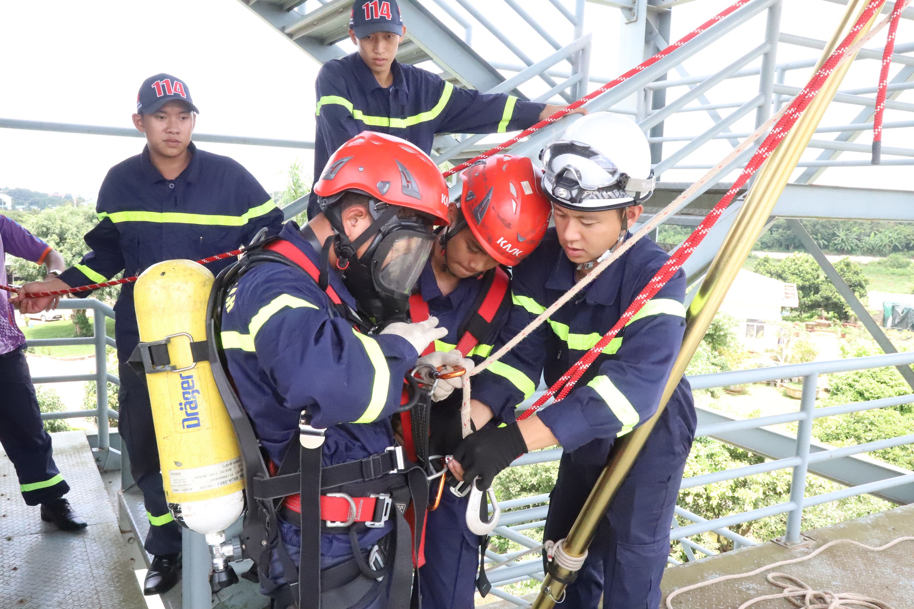 Nhận được yêu cầu cứu nạn, cứu hộ, Phòng Cảnh sát phòng cháy, chữa cháy và Cứu nạn cứu hộ lập tức điều động 20 cán bộ, chiến sĩ cùng hai xe cứu nạn, cứu hộ, một xe cứu thương và các thiết bị cứu nạn, cứu hộ chuyên dụng đến hiện trường triển khai công tác cứu nạn. “Do điều kiện đường đi chật hẹp, các phương tiện không thể tiếp cận vị trí xảy ra tai nạn nên cán bộ, chiến sĩ phải chạy bộ, mang vác các phương tiện dụng cụ thang, dây, bình ô-xy để phục vụ cứu nạn. Đồng thời, miệng giếng rất hẹp đường kính khoảng 50cm, dưới giếng tối, không có ánh sáng, hai nạn nhân đang ở dưới giếng trong tình trạng tinh thần hoảng loạn, kêu gào cầu cứu.
