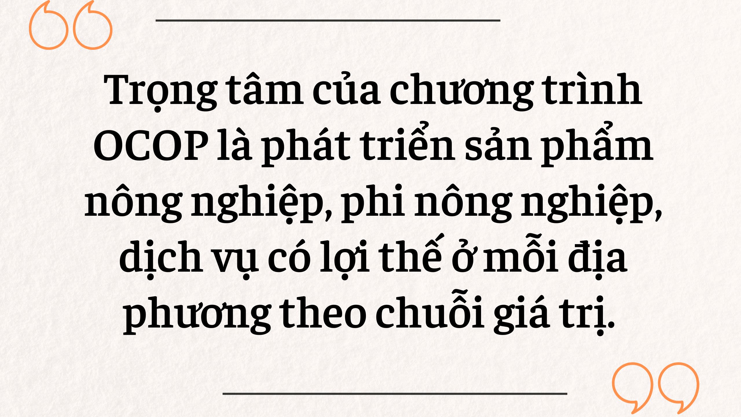 Vì thế OCOP chính là "báu vật" của từng làng quê thấm đẫm giá trị văn hóa, thổ nhưỡng, kỹ năng của người làm ra. Mỗi sản phẩm mang một dấu ấn địa phương và sẽ "kể" cho người mua câu chuyện về nó.
