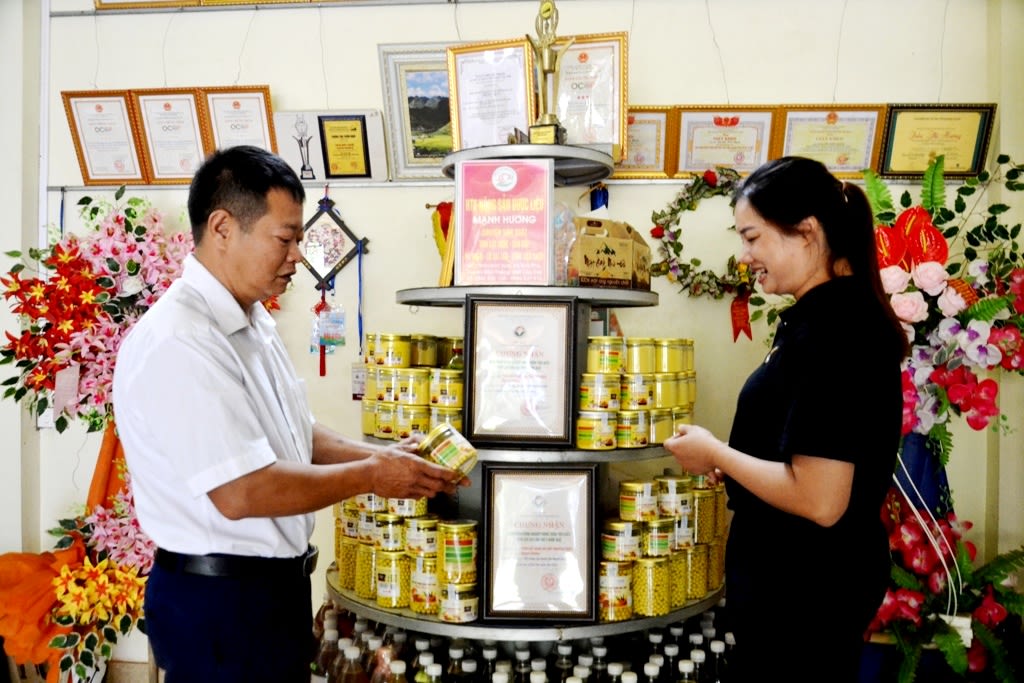 Từ cây thuốc sắc uống gia truyền lấy từ rừng Hoàng Liên chuyên bồi bổ, điều trị về gan, anh Mạnh nghiên cứu cách thức và đầu tư lắp đặt dây chuyền chiết xuất và cô đặc, tạo thành dạng cao đặc, đóng vào lọ thủy tinh quy cách, gắn nhãn xuất xứ để tiện lợi cho người dùng, dễ vận chuyển đi xa. "Tôi đang xúc tiến thủ tục, hồ sơ đăng ký chất lượng sản phẩm, hy vọng sẽ trở thành sản phẩm OCOP thứ 6 của HTX, để đưa bài thuốc bí truyền của đồng bào dân tộc Giáy phục vụ chăm sóc sức khỏe cho cộng đồng, lan xa thương hiệu dược liệu bản địa của Lào Cai", anh Mạnh tâm tình vậy.