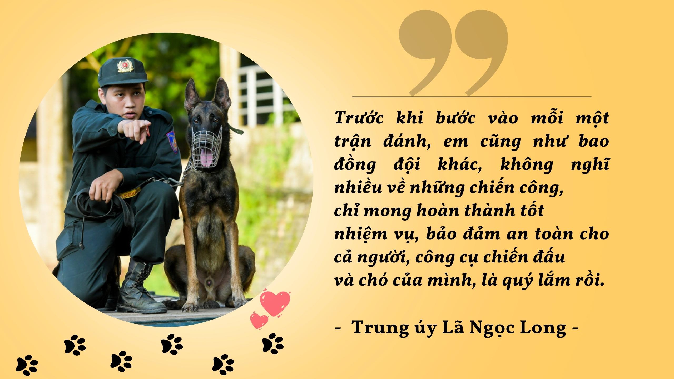 Kết thúc thời gian đi lính nghĩa, vụ, Trung úy Lã Ngọc Long, cán bộ Đội sử dụng nghiệp vụ (Trung tâm huấn luyện và sử dụng động vật nghiệp vụ (Bộ Tư lệnh Cảnh sát cơ động - Bộ Công an) đi vào chuyên nghiệp cũng là lúc nhận công văn “gọi” đi học chứng chỉ huấn luyện động vật nghiệp vụ. Ban đầu, chàng trai trẻ với nhiều ước mơ hoài bão thấy hơi “hoang mang” vì bản thân chưa bao giờ trang bị cho mình kiến thức gì về công việc “đặc thù” của “đặc biệt” đó, ngoài tình yêu với những chú chó trong gia đình cũng như làng xóm thuở ấu thơ.