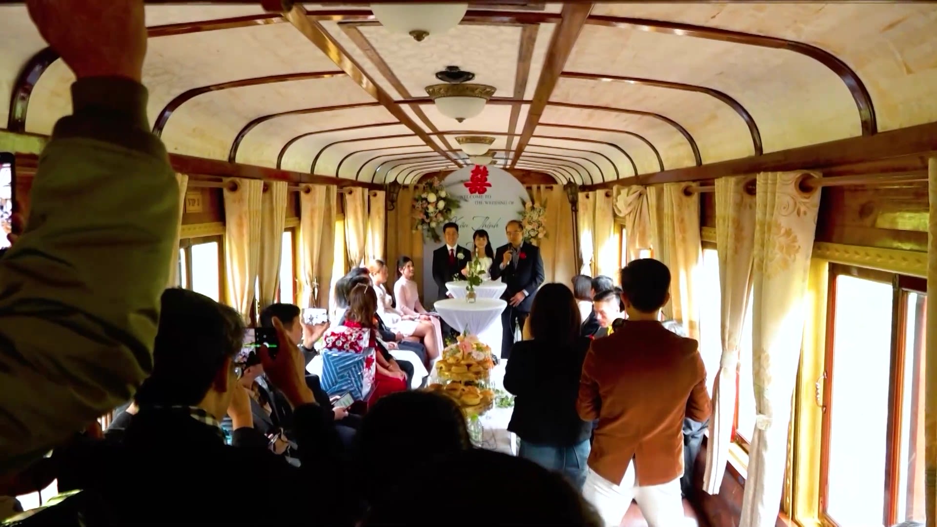 Trên các toa tàu, những nhân viên phục vụ chỉnh trang từng chi tiết nhỏ, nở nụ cười khi hành khách bước lên.