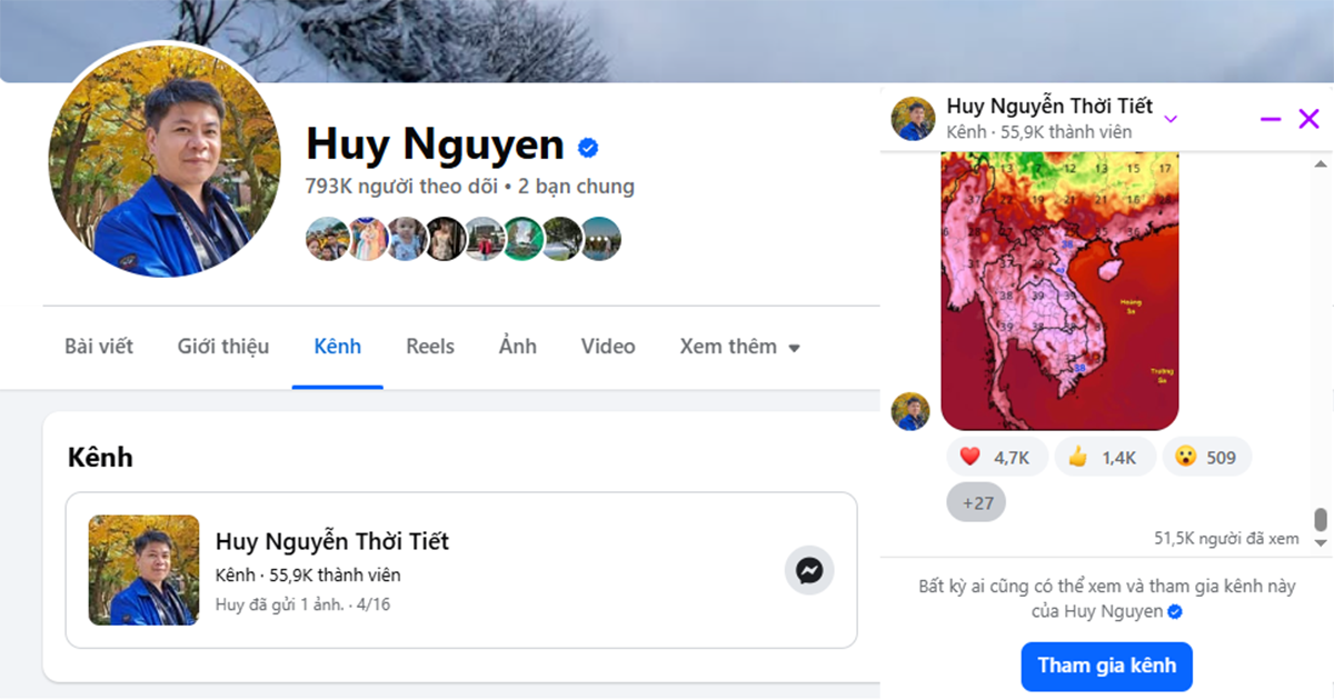 Nhiều năm nay trên mạng xã hội, trang Facebook “Huy Nguyen” của Tiến sĩ Nguyễn Ngọc Huy - chuyên gia độc lập về biến đổi khí hậu và quản lý rủi ro thiên tai, trở nên khá "hót" với hơn 775.000 người theo dõi.