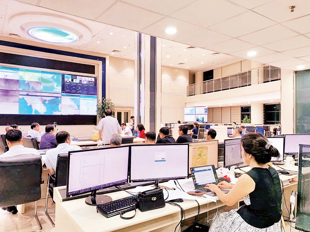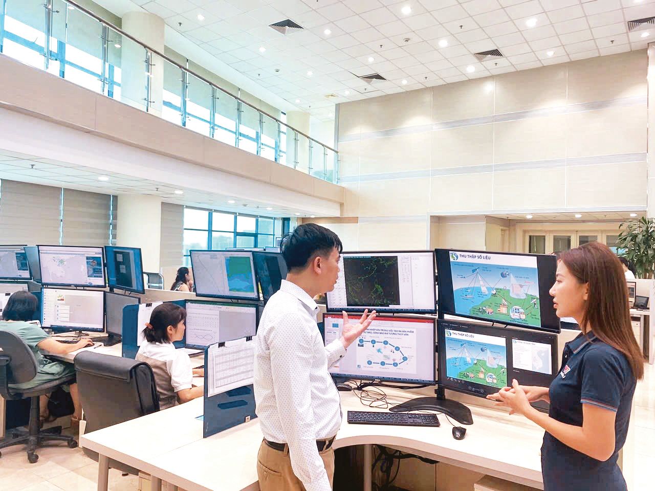 Mỗi khi có thiên tai, bão lũ đổ về, đội ngũ báo chí luôn trực chiến tại Trung tâm Dự báo khí tượng thủy văn quốc gia để có được những bản tin chính xác nhất. Ảnh: Hoài Linh