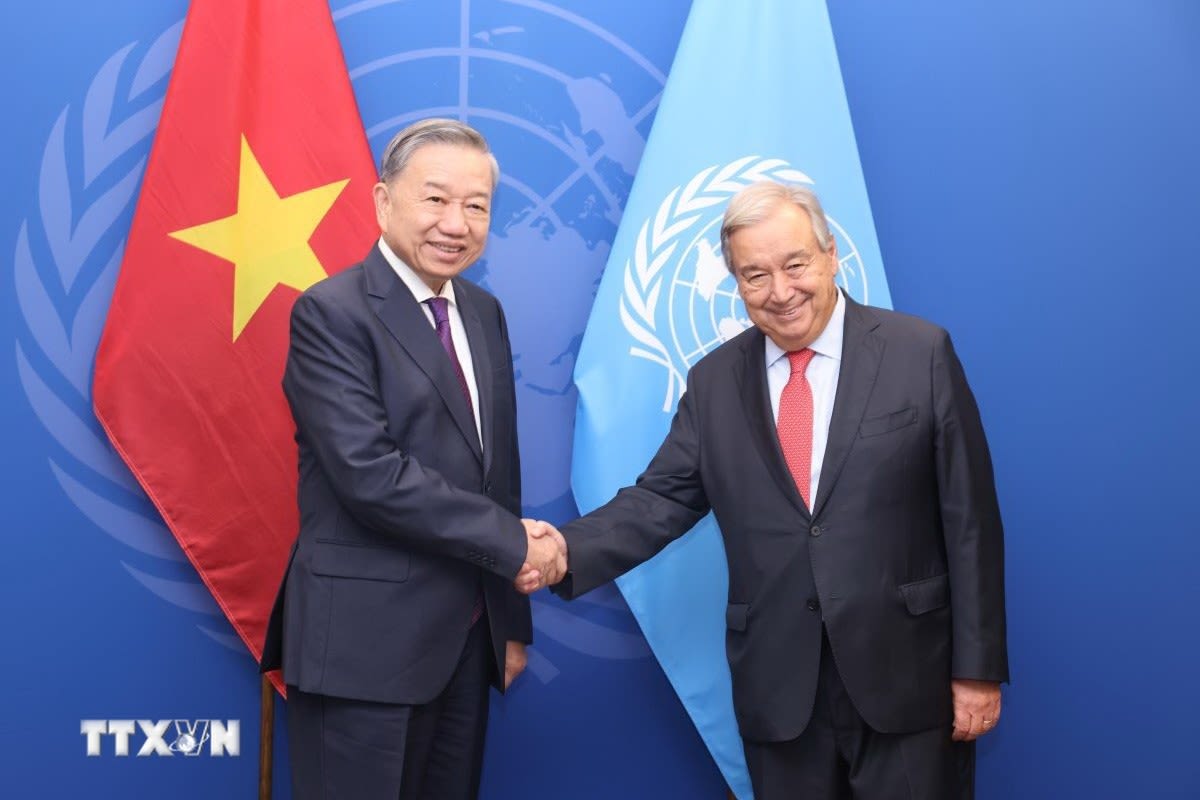Tổng Bí thư, Chủ tịch nước Tô Lâm gặp Tổng Thư ký Liên hợp quốc Antonio Guterres. Ảnh: TTXVN
