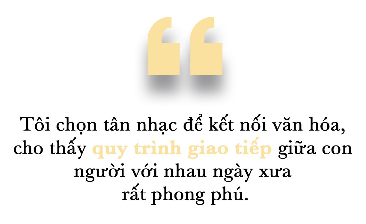 Di sản nếu biết khai thác sẽ tạo ra kinh tế. Ngày nay, sức ép của công nghệ và tiêu dùng bóp méo cả cách con người giao tiếp với nhau, ngồi bên nhau ai cũng cầm điện thọai mà thiếu đi một cơ chế giao tiếp đối thoại. Tôi chọn tân nhạc để kết nối văn hóa, cho thấy quy trình giao tiếp giữa con người với nhau ngày xưa rất phong phú.