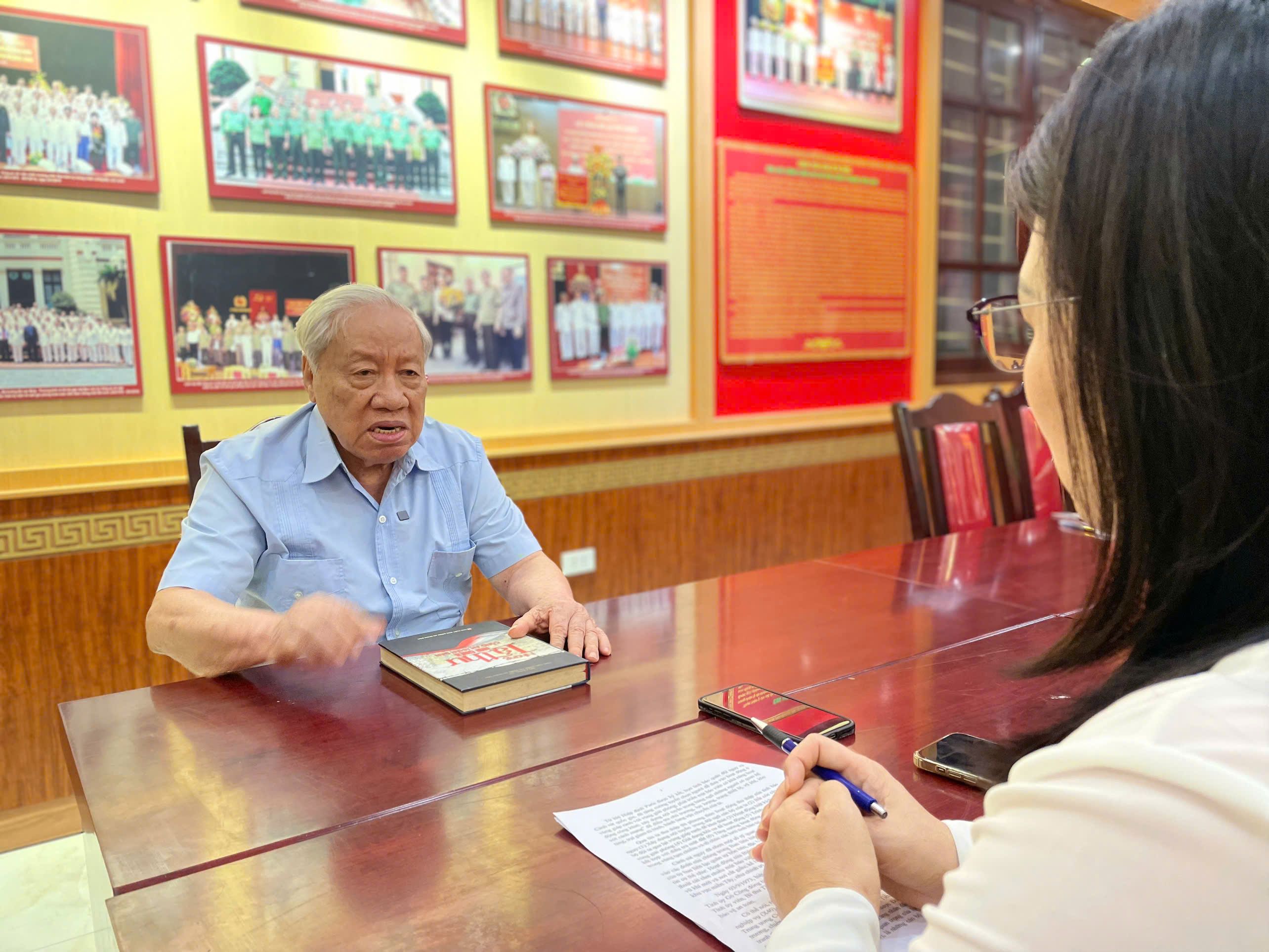 Thiếu tướng, Anh hùng Lực lượng vũ trang Nhân dân Phan Văn Lai - Trưởng Ban Liên lạc cán bộ Công an chi viện chiến trường miền nam thời kỳ kháng chiến chống Mỹ cứu nước, Bộ Công an chia sẻ với phóng viên Báo Nhân Dân. Ảnh: VƯƠNG NAM