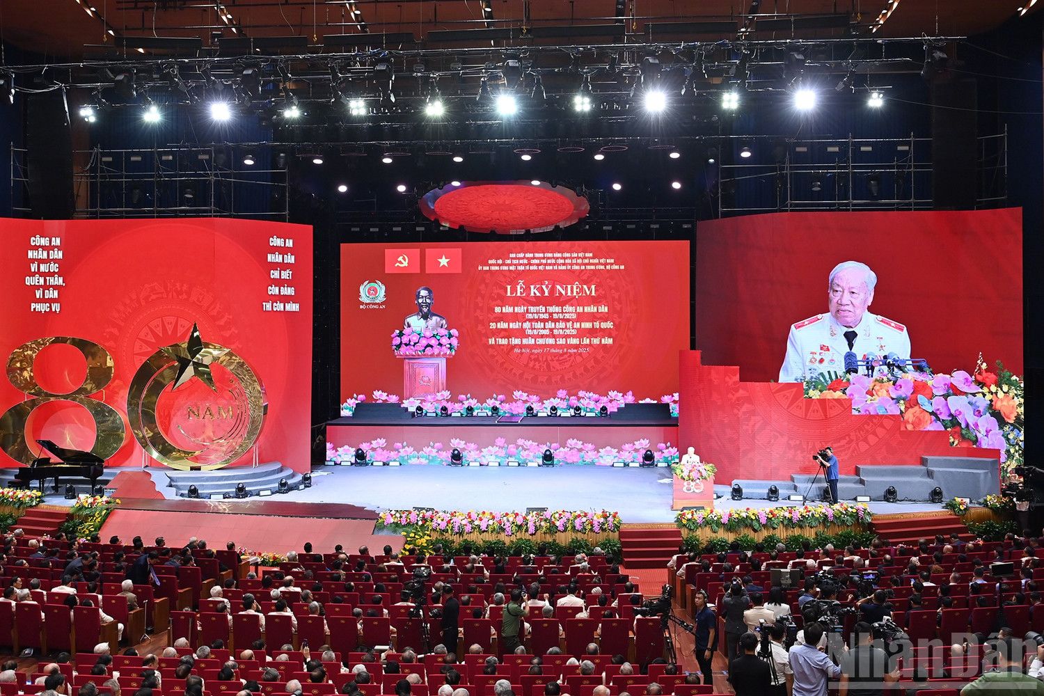 Thiếu tướng Phan Văn Lai, Trưởng Ban liên lạc Công an chi viện chiến trường miền Nam thời kỳ kháng chiến chống Mỹ cứu nước Bộ Công an phát biểu tại Lễ kỷ niệm 80 năm Ngày truyền thống Công an nhân dân Việt Nam, 20 năm Ngày hội toàn dân Bảo vệ An ninh Tổ quốc và đón nhận Huân chương Sao Vàng lần thứ năm của Bộ Công an, ngày 17/8/2025. Ảnh: ĐĂNG KHOA