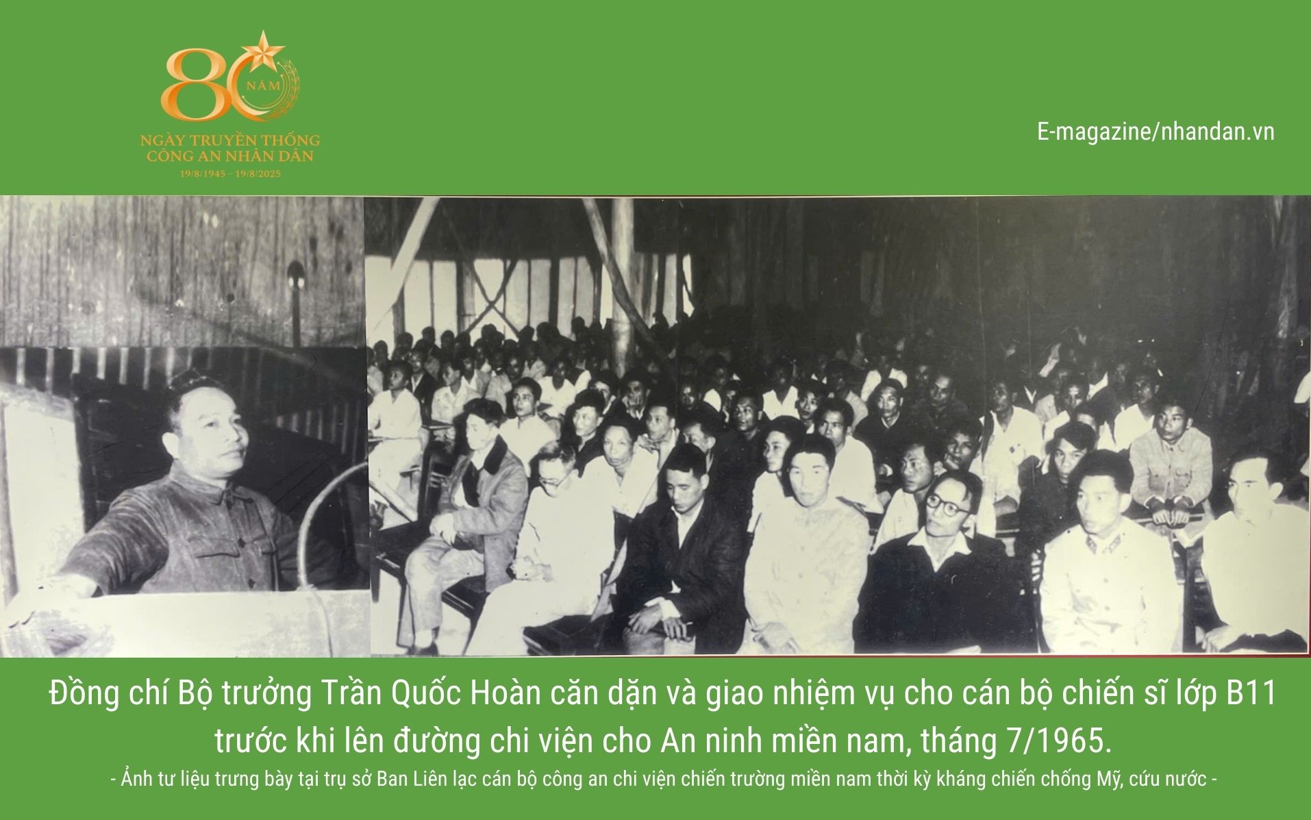 Ông vẫn nhớ như in lớp học đầu tiên được Bộ Công an đào tạo, lựa chọn: “Năm 1961, Đảng đoàn và lãnh đạo Bộ Công an chọn gần 300 cán bộ, bao gồm cả người miền bắc và miền nam về Trường Công an Trung ương bồi dưỡng kiến thức và sức khỏe. Đây là lớp cán bộ trung, cao cấp đầu tiên của Lực lượng Công an nhân dân do Bộ Công an trực tiếp tổ chức, quản lý, bồi dưỡng, rèn luyện để chi viện cho chiến trường miền nam. Lớp học được Bộ trưởng Trần Quốc Hoàn và Lãnh đạo Bộ nhiều lần đến thăm, động viên, dặn dò. Và ngày 21/2/1962, đoàn cán bộ trung, cao cấp đầu tiên ở nhiều lĩnh vực nghiệp vụ, bao gồm 233 đồng chí, đã được lựa chọn và cử vào chi viện khắp chiến trường miền nam. Theo thống kê, lực lượng Công an nhân dân đã chi viện 11.294 đồng chí cho chiến trường miền nam, góp phần xây dựng bộ khung cán bộ tăng sức, tăng lực tạo điều kiện để an ninh miền nam hoàn thành nhiệm vụ”.