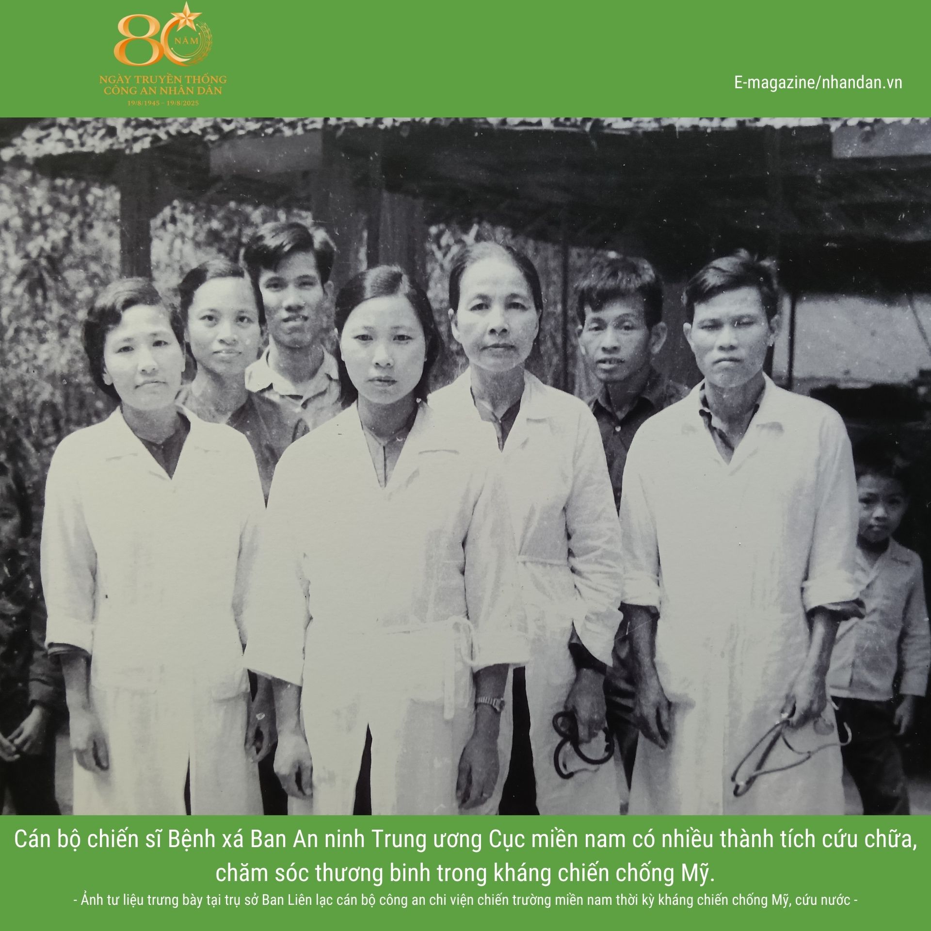 Để bảo đảm công tác khám, chữa thương, chữa bệnh trong điều kiện chiến tranh, Bộ Công an cũng đã chi viện hàng trăm cán bộ y, bác sĩ cùng hàng chục tấn thuốc tân dược đủ hình thành Bệnh xá Trung ương Cục miền nam và năm 1973 chuyển thành một Bệnh viện. Đội ngũ y, bác sĩ phải làm việc trong hoàn cảnh chiến trường hết sức khó khăn. Vừa chữa bệnh vừa phải trồng sắn, đi tải gạo trong rừng và tham gia đánh địch càn quét. Trong hoàn cảnh thiếu thốn thiết bị, dụng cụ cũng như cơ sở vật chất, các đồng chí vẫn tìm mọi cách khắc phục khó khăn, đưa ra các sáng kiến để cải thiện việc khám chữa bệnh, như tạo ra “dịch truyền” từ lấy nước mưa hứng bằng ni-lon. Ngoài chữa bệnh, mỗi thầy thuốc còn là những chiến sĩ sẵn sàng bảo vệ bệnh nhân, che chắn cho bệnh nhân trong những trận càn hay trước bom đạn, pháo kích của địch.