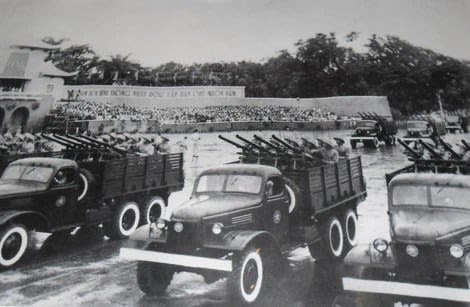 Đội hình cơ giới của Quân đội Nhân dân Việt Nam trong cuộc diễu binh ngày 1/1/1955. Ảnh: Tư liệu Bảo tàng Hậu cần