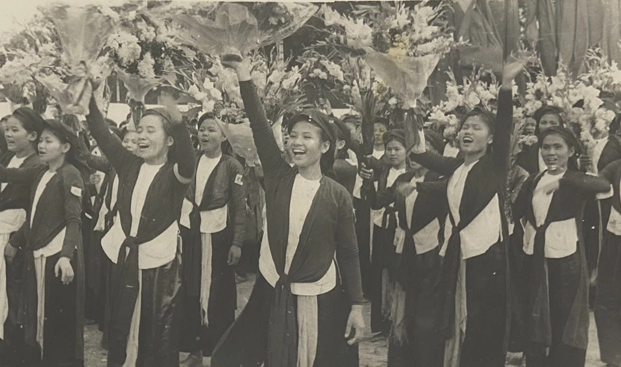 Các chị em hàng hoa với những bó hoa tươi đẹp hoan hô chào mừng Chủ tịch Hồ Chí Minh, Trung ương Đảng và Chính phủ - Ảnh: Bộ Ngoại giao