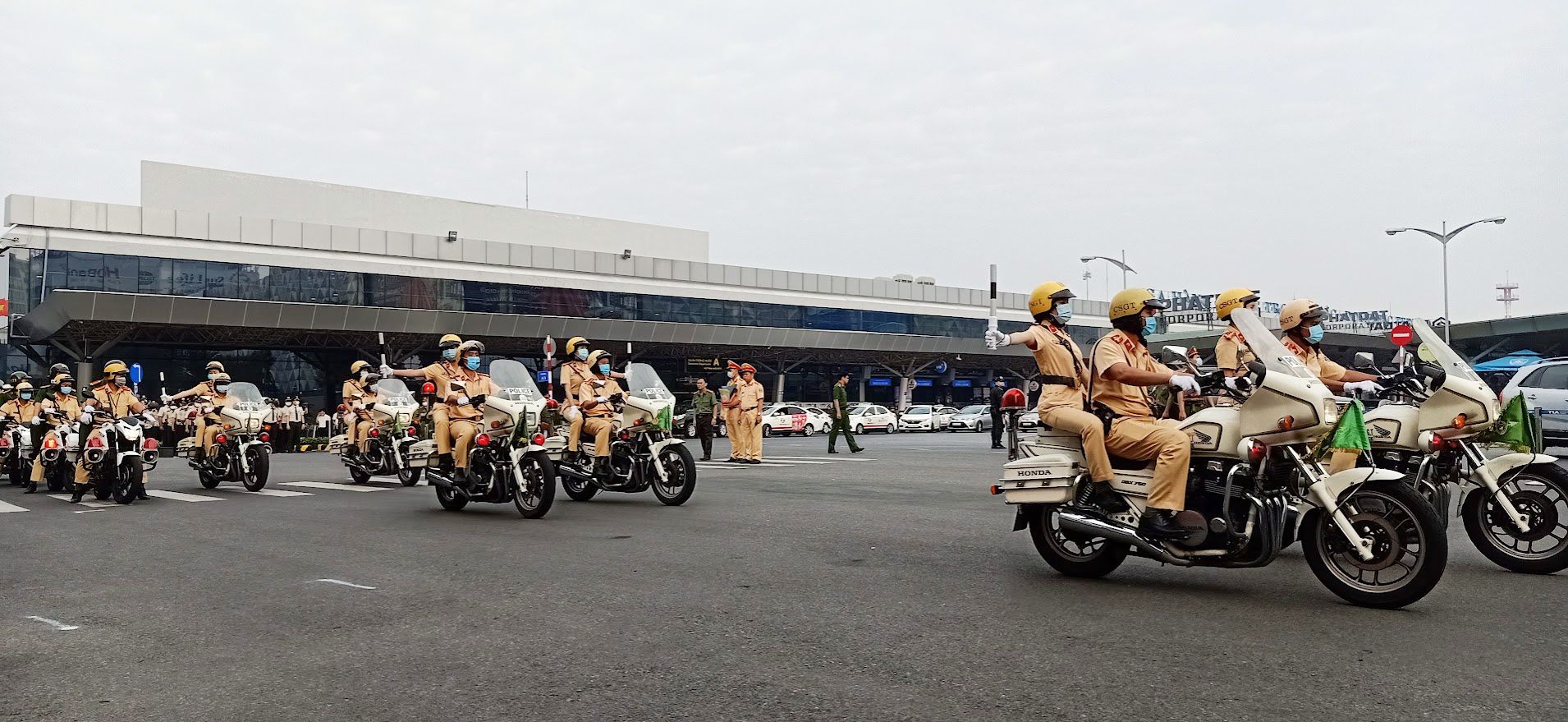 Cảnh sát giao thông thành phố trong một cuộc diễn tập tại sân bay quốc tế Tân Sơn Nhất.