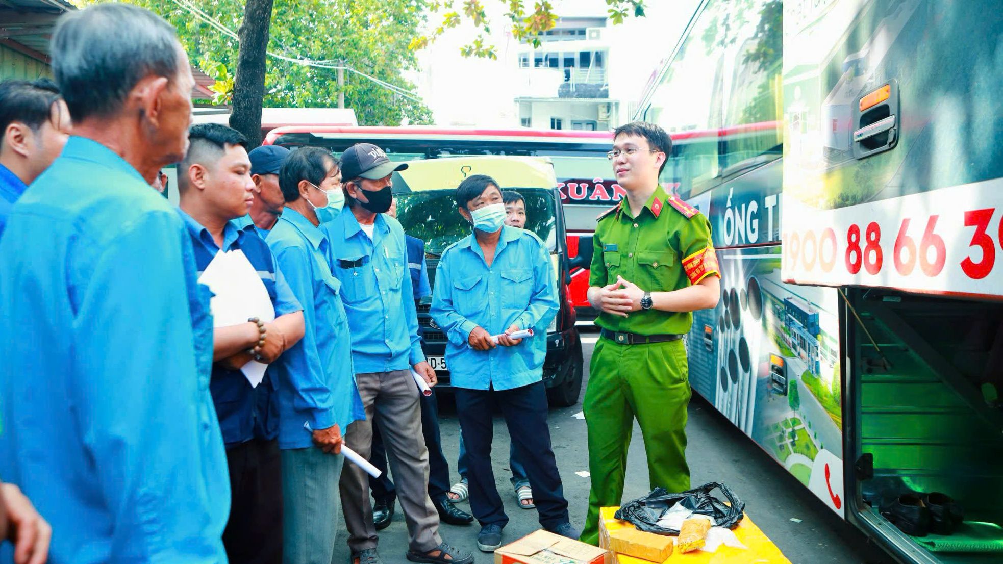 Công an thành phố trao đổi với nghiệp đoàn xe ôm về các thủ đoạn của tội phạm tại các khu vực bến xe.