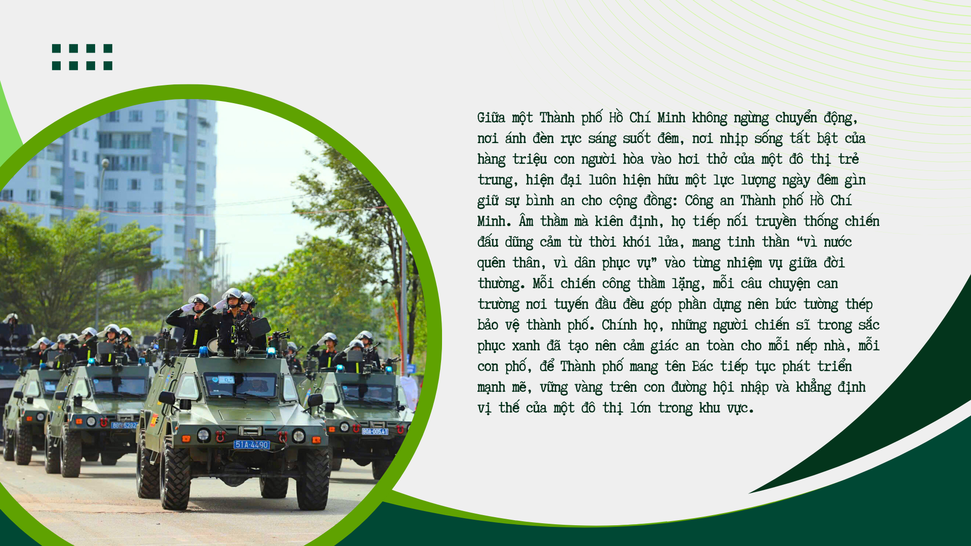 Trước yêu cầu mới của một đô thị năng động, đầy cơ hội nhưng cũng chứa đựng nhiều thách thức, lực lượng Công an Thành phố Hồ Chí Minh tiếp tục kiên định nguyên tắc “chủ động phòng ngừa, kiên quyết đấu tranh”, giữ vai trò nòng cốt trong bảo đảm an ninh, trật tự; là điểm tựa vững chắc của Đảng bộ, chính quyền và nhân dân.