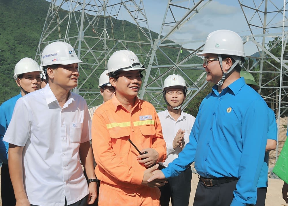 Chủ tịch Tổng Liên đoàn Lao động Việt Nam Nguyễn Đình Khang động viên công nhân lao động thi đua trên các công trình trọng điểm quốc gia.