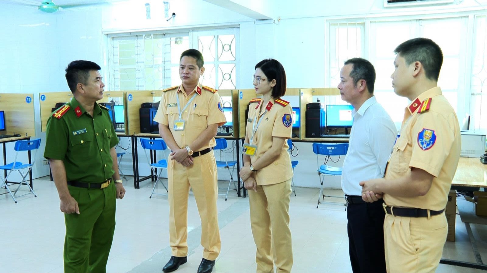 Đồng chí Đại tá Nguyễn Minh Hải, Phó Giám đốc Công an tỉnh kiểm tra công tác sát hạch, cấp giấy phép lái xe trên địa bàn tỉnh.