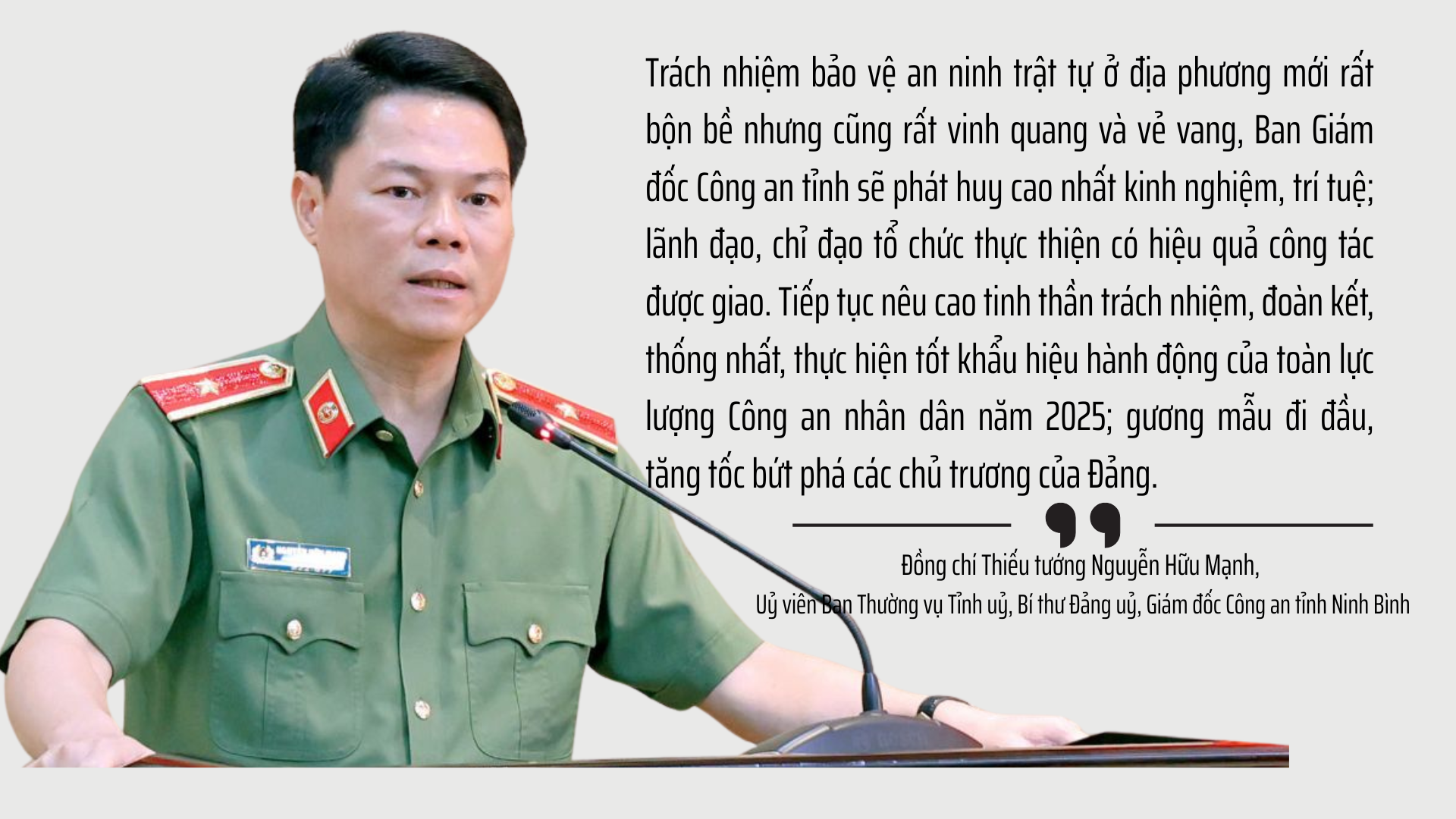 Với mô hình Công an 2 cấp tỉnh - xã; Công an tỉnh Ninh Bình quyết tâm giữ vững an ninh trật tự địa bàn, khẳng định rõ vai trò nền tảng cho sự phát triển mạnh mẽ và bền vững của tỉnh Ninh Bình sau hợp nhất- người đứng đầu Công an tỉnh nhấn mạnh.