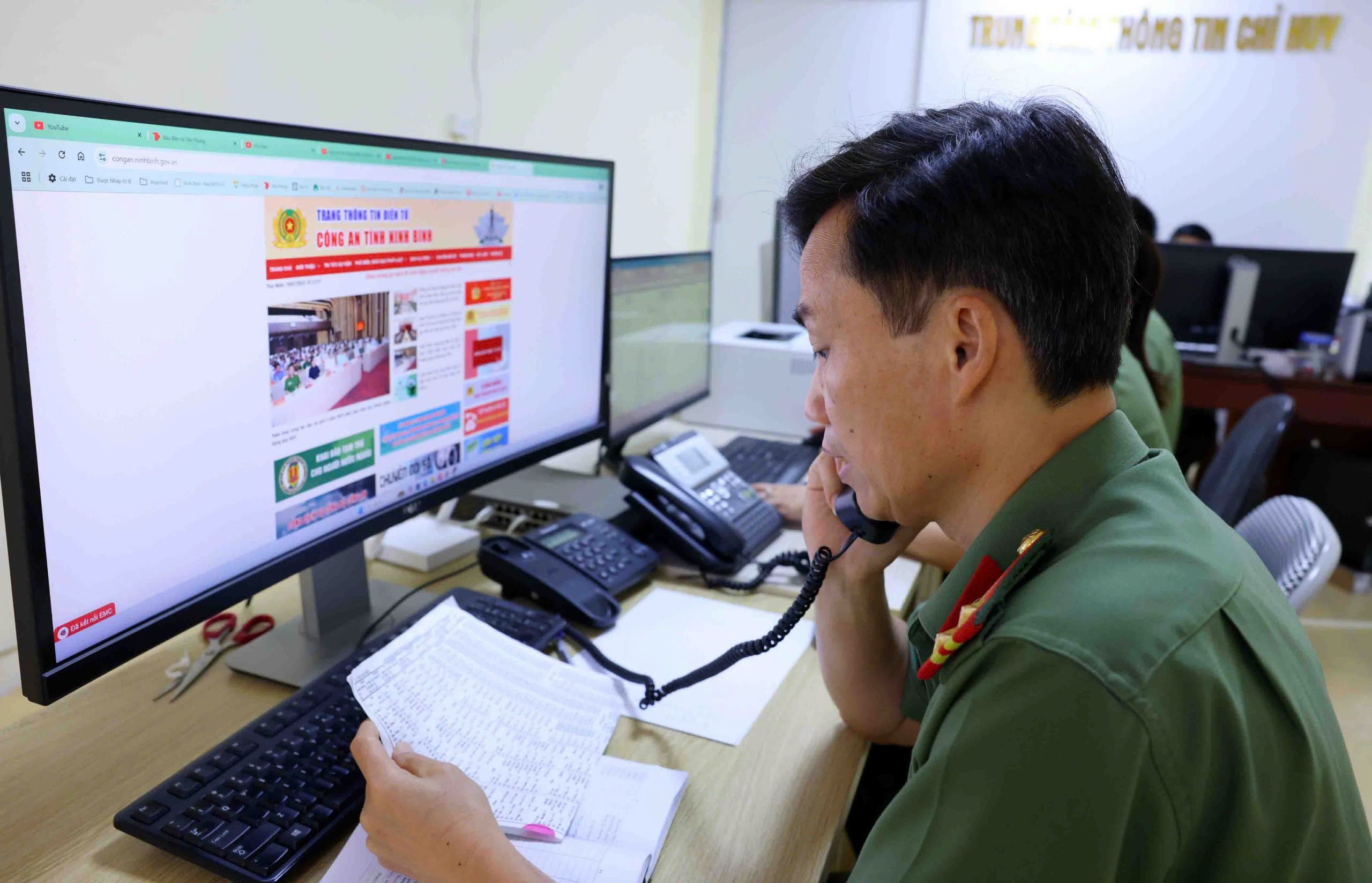 Công an tỉnh Ninh Bình tiếp nhận, xử lý thông tin phản ánh của người dân tại Trung tâm chỉ huy.