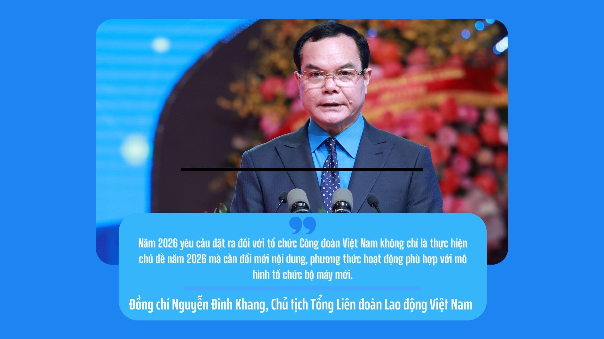 Bước sang năm 2026, tổ chức Công đoàn đặt ra những mục tiêu tiếp tục đổi mới, nâng cao chất lượng hoạt động. Tại Hội nghị Đoàn Chủ tịch Tổng Liên đoàn Lao động Việt Nam lần thứ 15 khóa XIII, đồng chí Nguyễn Đình Khang, Chủ tịch Tổng Liên đoàn Lao động Việt Nam nhấn mạnh: Năm 2026 là năm bản lề để khởi đầu cho nhiệm kỳ mới. Với mục tiêu tổ chức Đại hội XIV vào quý II năm 2026, yêu cầu đặt ra đối với tổ chức Công đoàn Việt Nam không chỉ là thực hiện chủ đề năm 2026 "Đẩy mạnh đổi mới sáng tạo; cụ thể hóa, đưa Nghị quyết Đại hội Đảng, Mặt trận Tổ quốc, Công đoàn vào cuộc sống" mà cần đổi mới nội dung, phương thức hoạt động phù hợp với mô hình tổ chức bộ máy mới.
