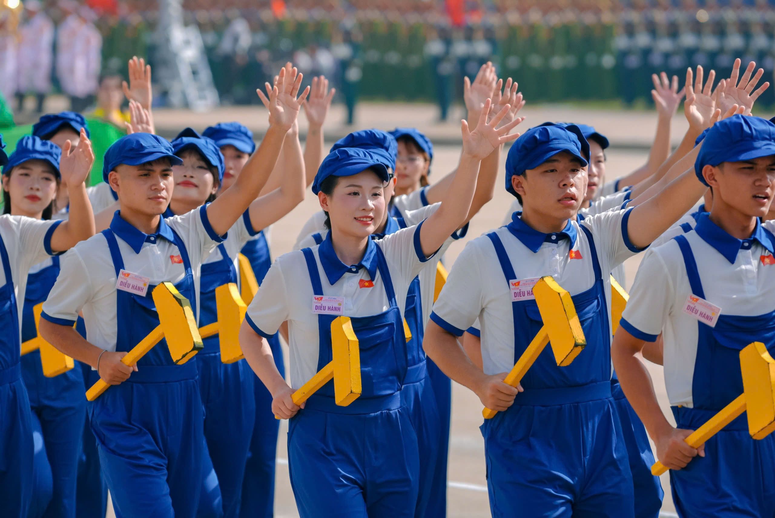 Khối diễu hành Công nhân Việt Nam tại Lễ kỷ niệm 80 năm Cách mạng tháng Tám và Quốc khánh 2/9.Bác Hồ.