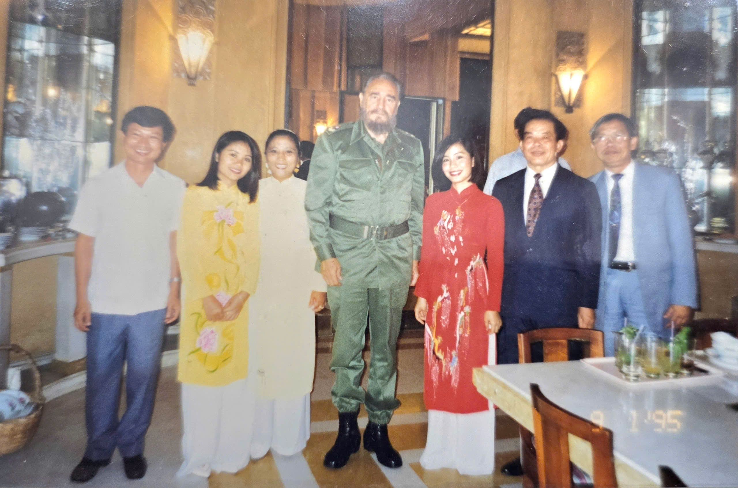 Chị Thanh Loan, là đại diện sinh viên Việt Nam tại Cuba, vinh dự được gặp Chủ tịch Fidel Castro tại Lễ kỷ niệm 50 năm Quốc khánh Việt Nam tại La Habana năm 1995. (Ảnh: nhân vật cung cấp)