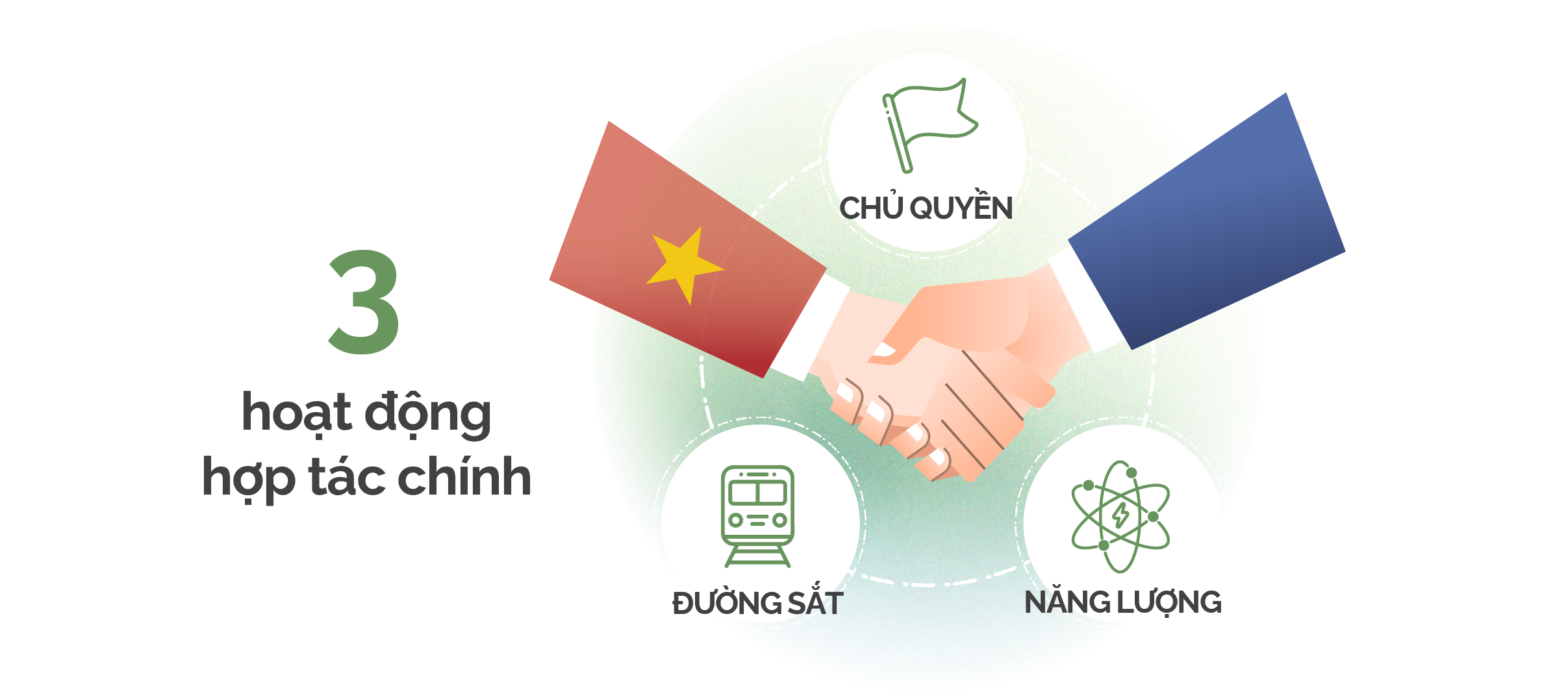 Cụ thể, khi nâng cấp mối quan hệ lên tầm Đối tác chiến lược toàn diện, lãnh đạo hai nước đã đề ra ba trục hợp tác chính: