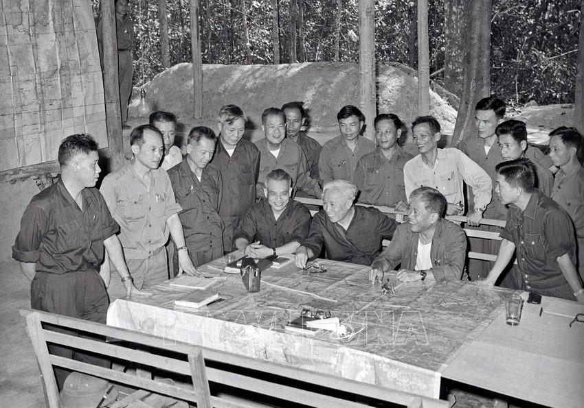 Bộ Chỉ huy Chiến dịch Hồ Chí Minh tại căn cứ Tà Thiết - Lộc Ninh, trong đó Trung tướng Lê Đức Anh là Phó Tư lệnh cùng với các đồng chí Thượng tướng Trần Văn Trà, Trung tướng Đinh Đức Thiện và Trung tướng Lê Trọng Tấn (1975).