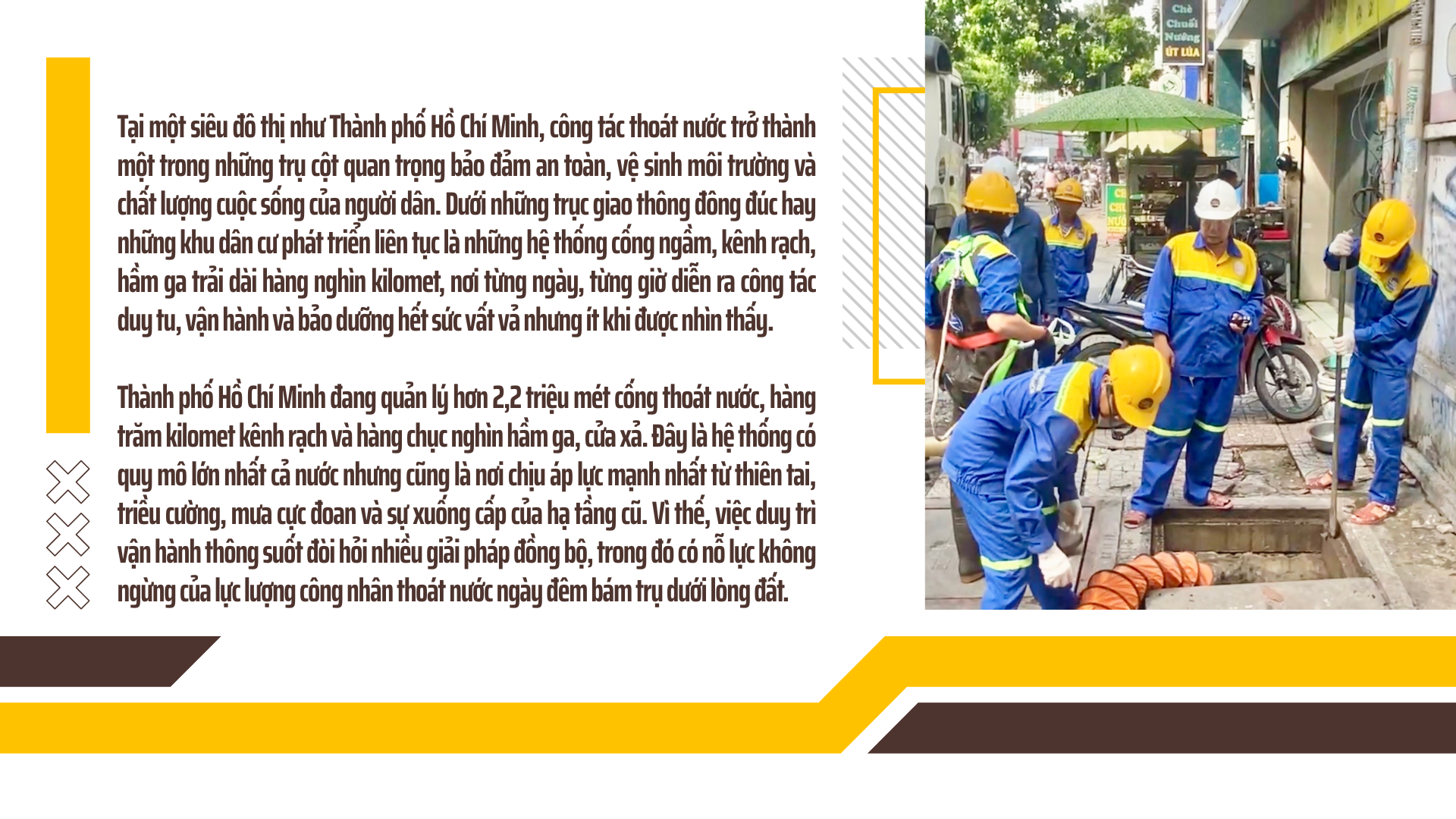 Mỗi năm, ngay từ mùa khô, Công ty Trách nhiệm hữu hạn một thành viên Thoát nước đô thị Thành phố Hồ Chí Minh đã chủ động tổ chức hoạt động nạo vét, làm thông thoáng dòng chảy để chuẩn bị cho mùa mưa. Khi các đợt mưa lớn xuất hiện, công nhân tiếp tục tăng cường tuần tra, xử lý nghẹt cống, cùng với đó là tình trạng sạt lở, thay tấm đan chắn rác và sửa chữa hư hỏng để bảo đảm an toàn giao thông.