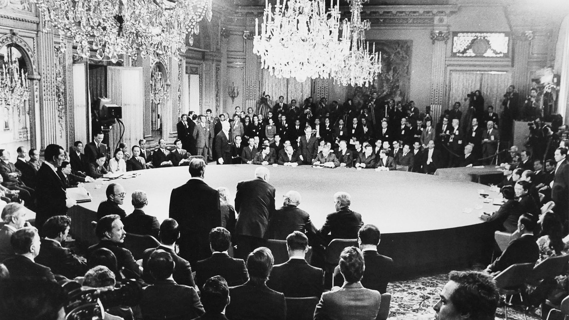 Quang cảnh lễ ký kết chính thức Hiệp định Paris. Ảnh: TTXVN