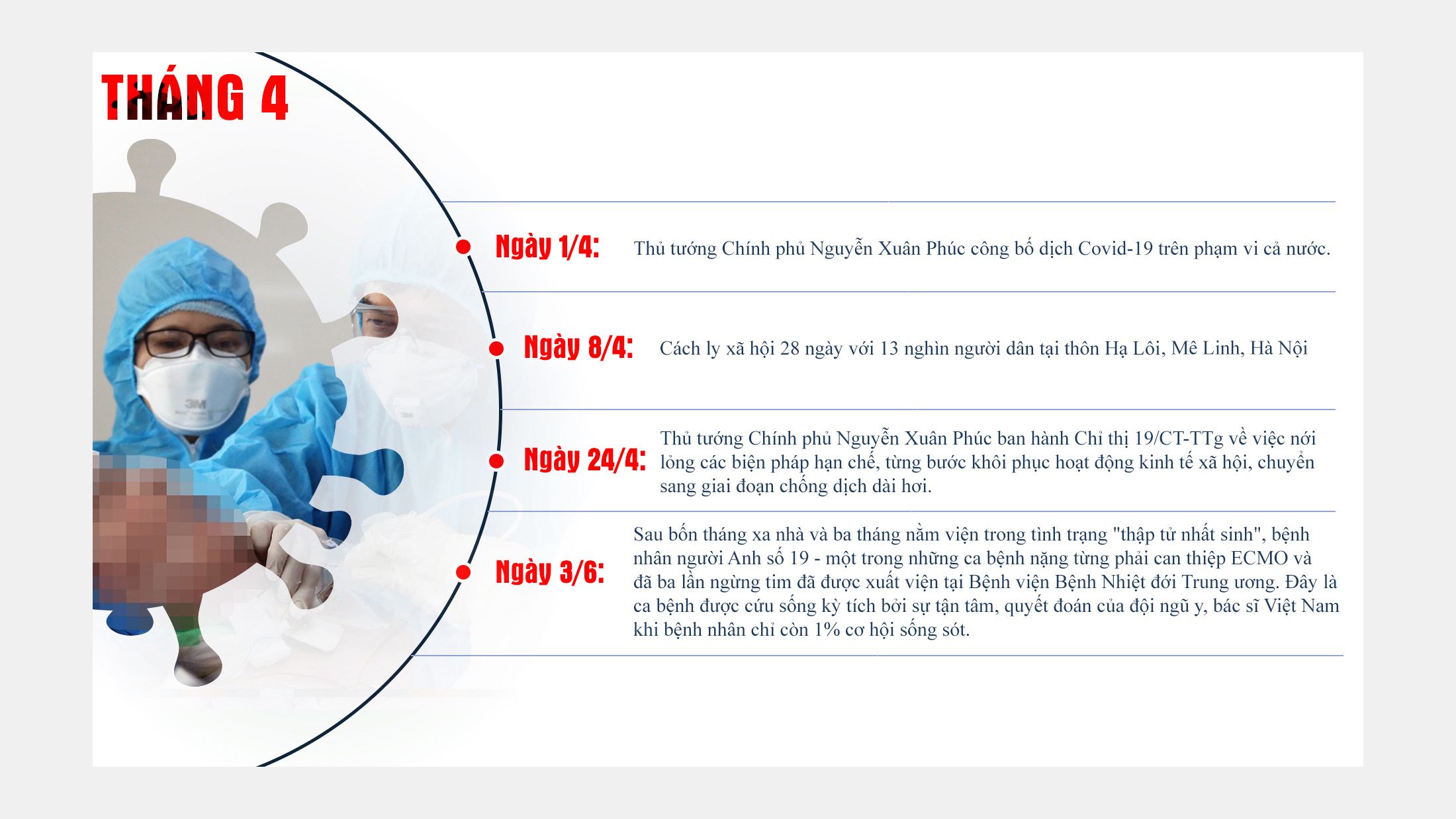 Đại dịch Covid-19 đã tạo ra 4 làn sóng lớn tấn công sâu rộng trên toàn quốc với gần 1,7 triệu người nhiễm SARS-CoV-2 và hơn 31 nghìn người tử vong. Nhìn lại 2 năm qua, Việt Nam trải qua nhiều tổn thương, mất mát nhưng chúng ta cũng đã vững vàng vượt quanhững đợt dịch tàn khốc bằng sự chỉ đạo sát sao, kịp thời của Đảng, Nhà nước, Chính phủ và sự đồng lòng của người dân.
